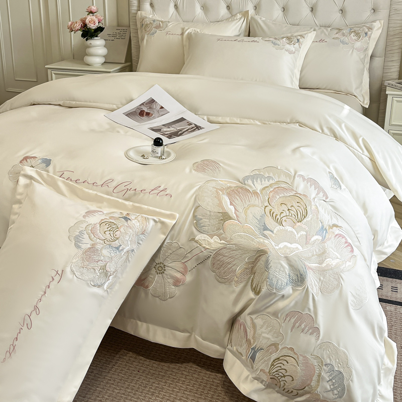 (总)菲儿家纺 2025新款轻奢简约冰丝刺绣四件套-铃兰,铃兰-灰,铃兰-兰,铃兰-粉,铃兰-米白,铃兰-紫