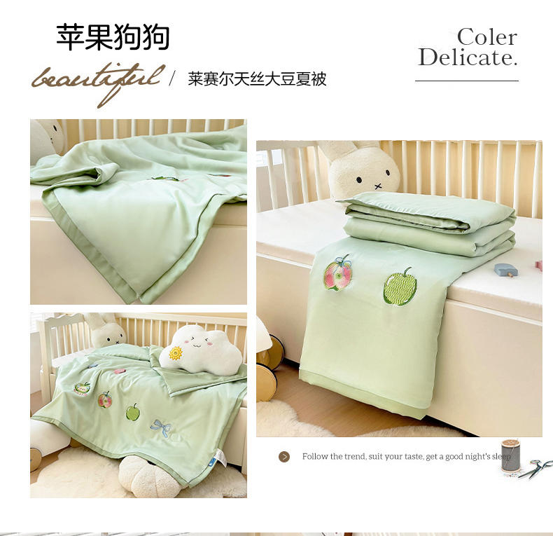 商品名称:御棉坊 2025新款60S莱赛尔兰精天丝大豆刺绣儿童夏被子被芯 苹果狗狗