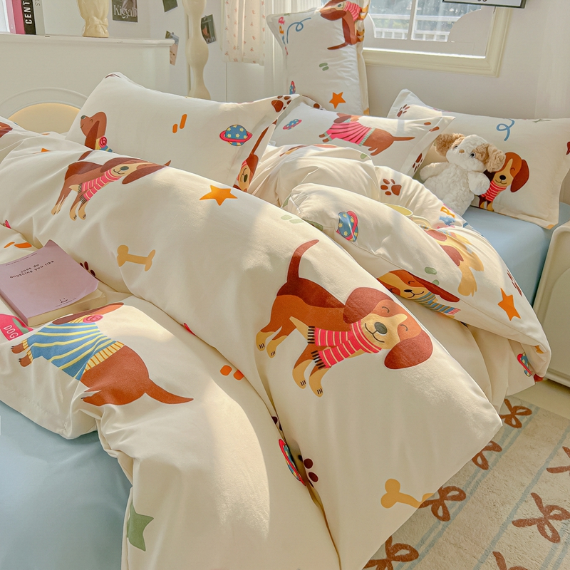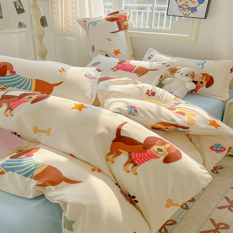 (总)梦卓家纺 2025新款超柔水洗棉印花双层纱卡通小清新四件套,奶萌小狗,豹纹KT,草莓凯蒂,动物乐园,格子樱桃,滑板KT,黄油小奶熊,卡哇伊,蓝格汪,木马小布,碎花兔兔,糖果甜品屋,甜心美乐蒂,宇宙太空人,招财猫,珍珠小熊,紫色蝴蝶结,字母小狗