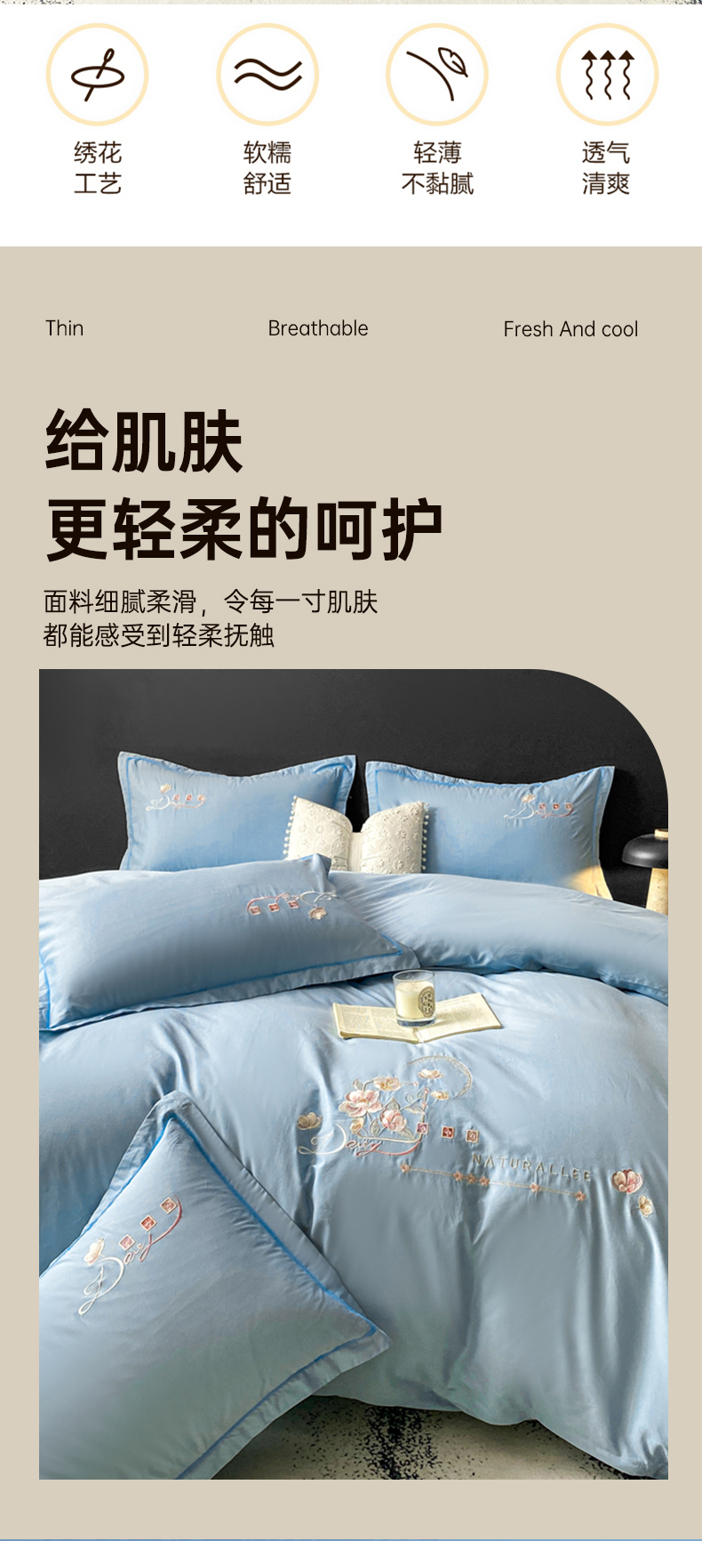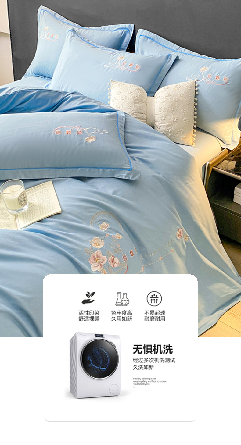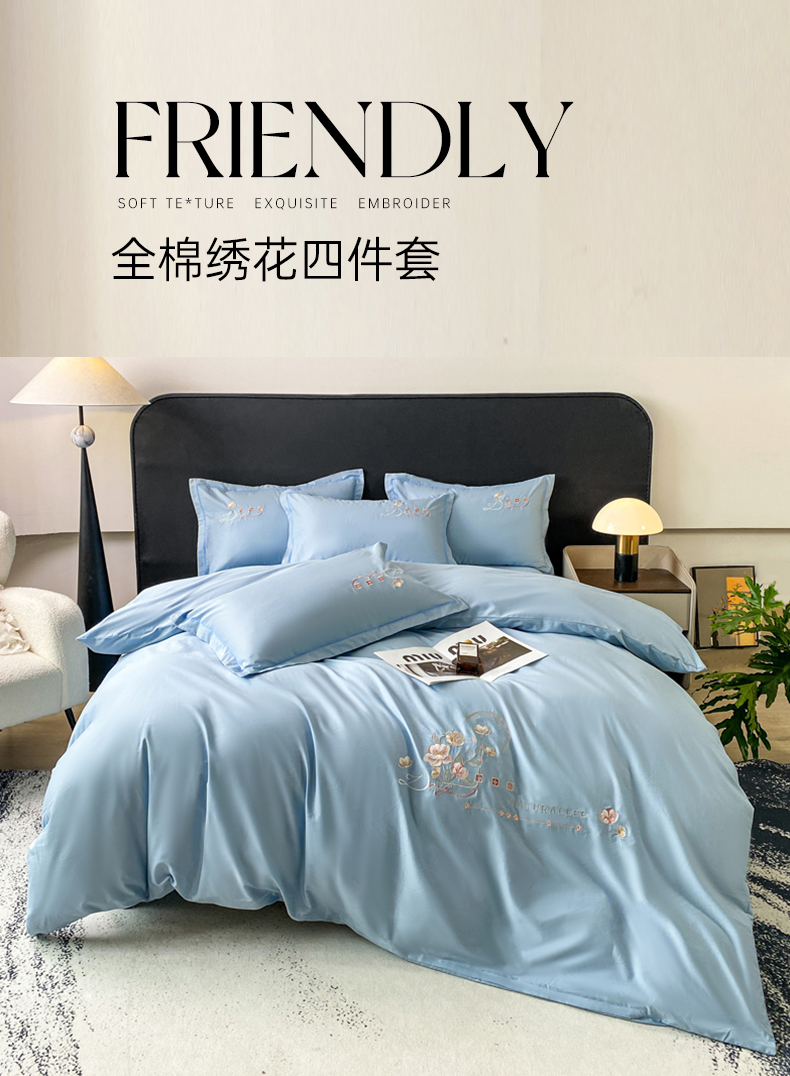 当前位置: 91家纺网 > 商品网购 > 床品套件 > 四件套 > 其它四件套 > 昊翔家纺 【量大价优】2025新款全棉纯棉长绒棉刺绣绣花四件套【配礼盒提供买家秀】 朝花-天空兰