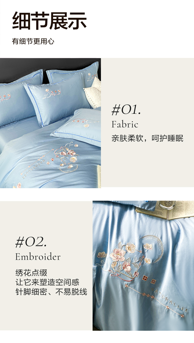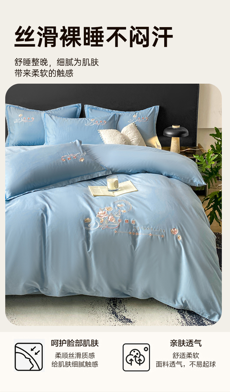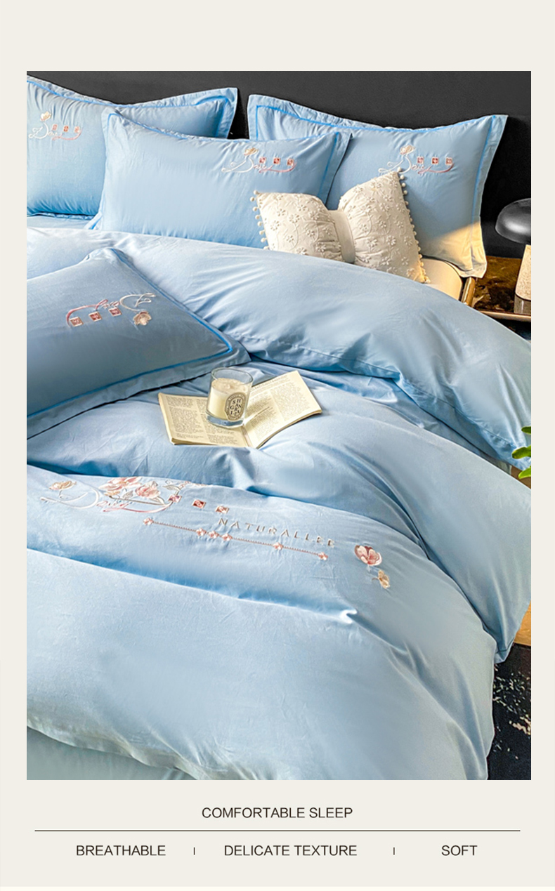 当前位置: 91家纺网 > 商品网购 > 床品套件 > 四件套 > 其它四件套 > 昊翔家纺 【量大价优】2025新款全棉纯棉长绒棉刺绣绣花四件套【配礼盒提供买家秀】 朝花-天空兰