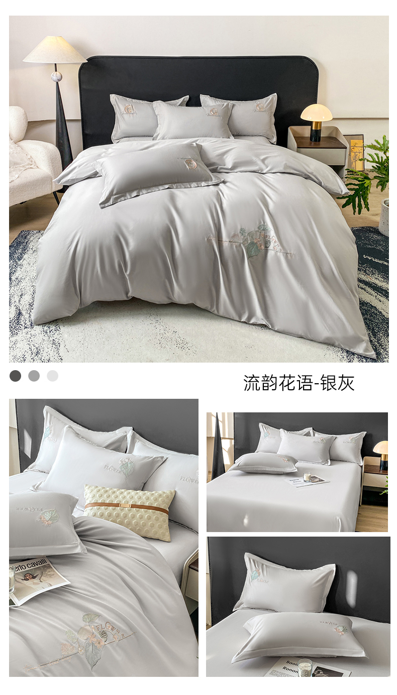 当前位置: 91家纺网 > 商品网购 > 床品套件 > 四件套 > 其它四件套 > 昊翔家纺 【量大价优】2025新款全棉纯棉长绒棉刺绣绣花四件套【配礼盒提供买家秀】 流韵花语-银灰