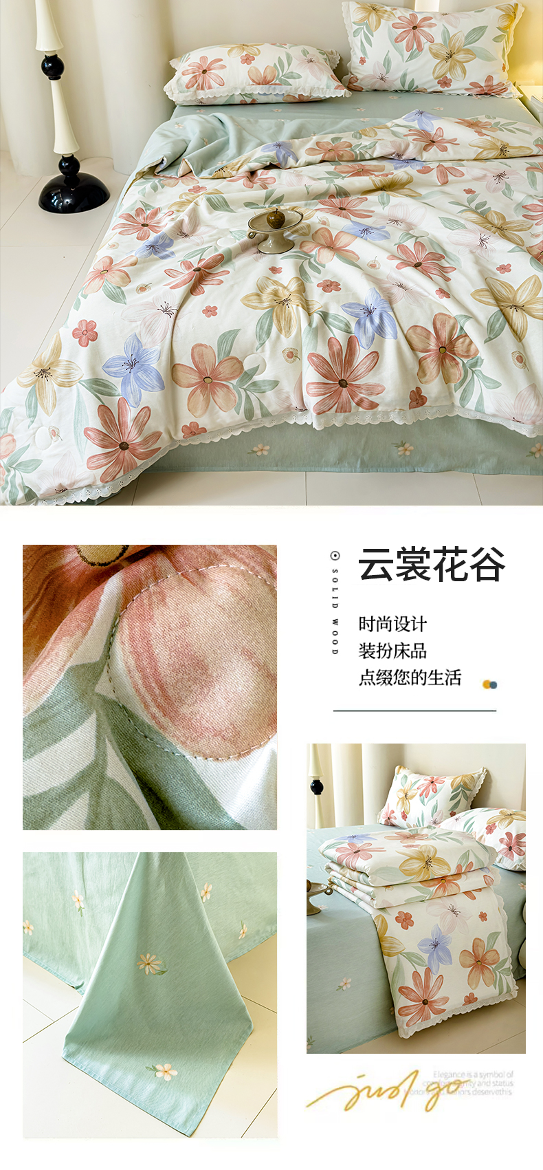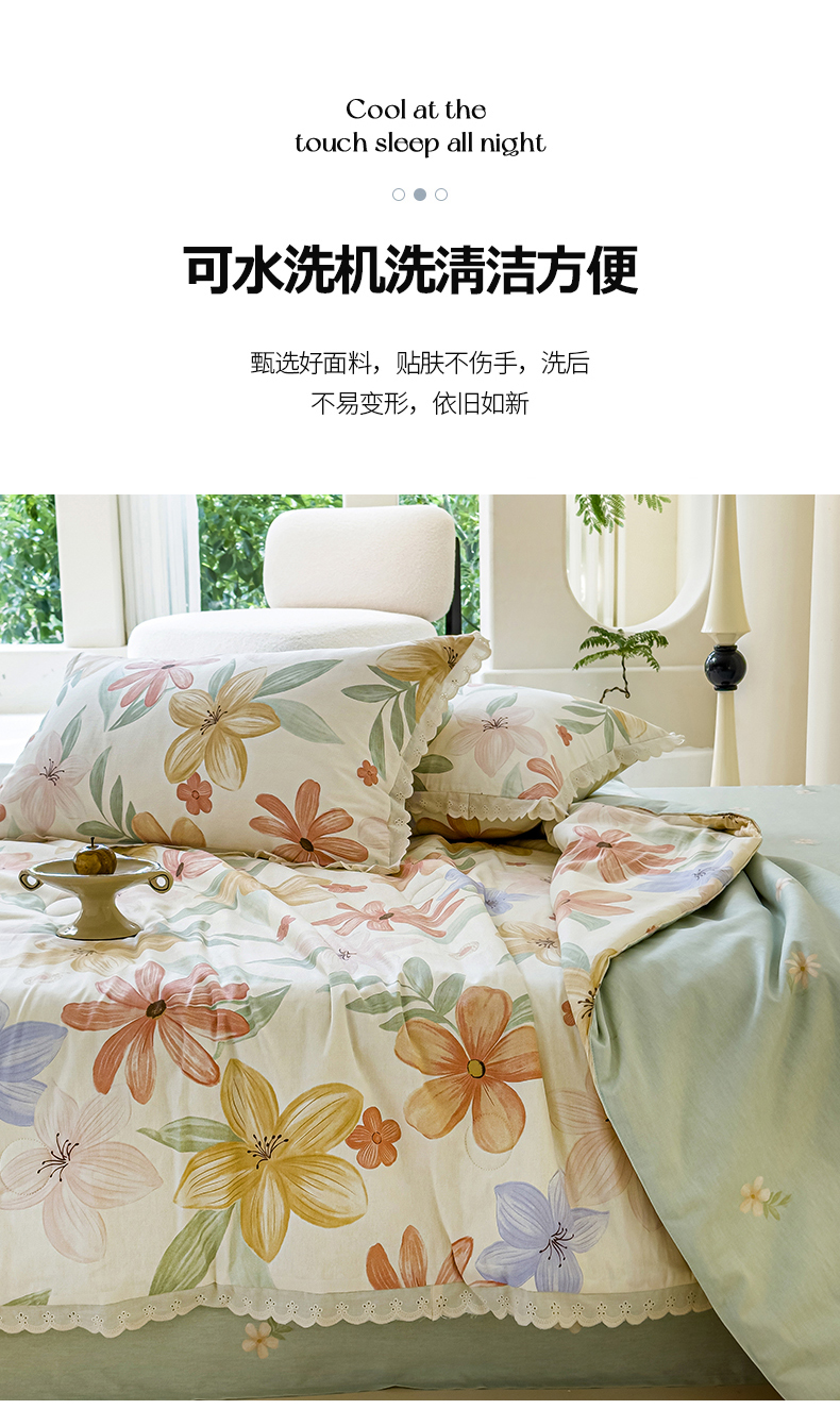 商品名称:被窝家纺 2025新款全棉花边大豆夏被四件套 云裳花谷