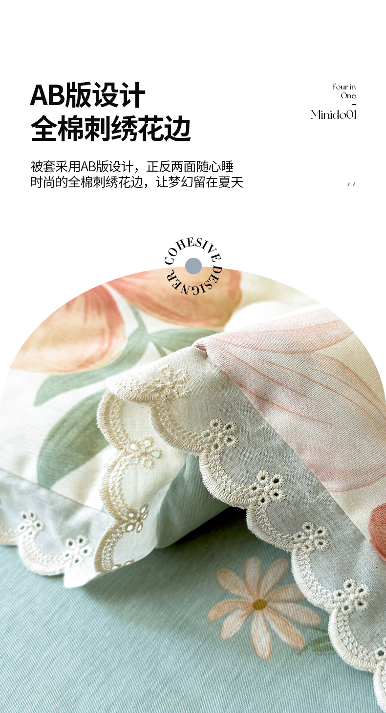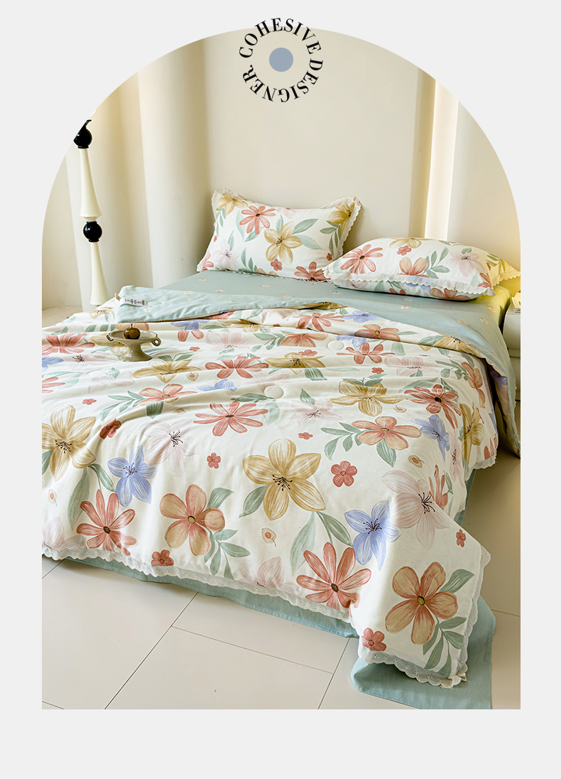 被窝家纺 2025新款全棉花边大豆夏被四件套 云裳花谷