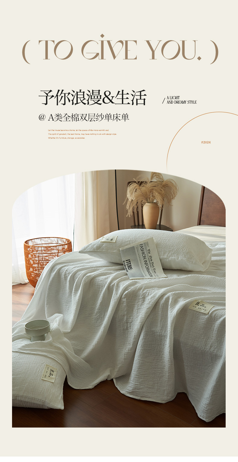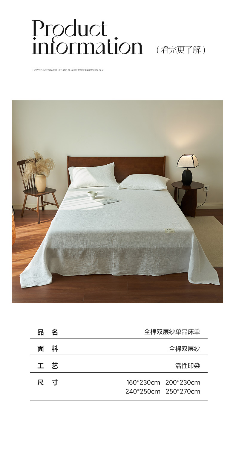 当前位置: 91家纺网 > 商品网购 > 床上用品 > 床单 > 寐绸家纺 2025新款纯棉双层纱单床单 双层纱床单-米白