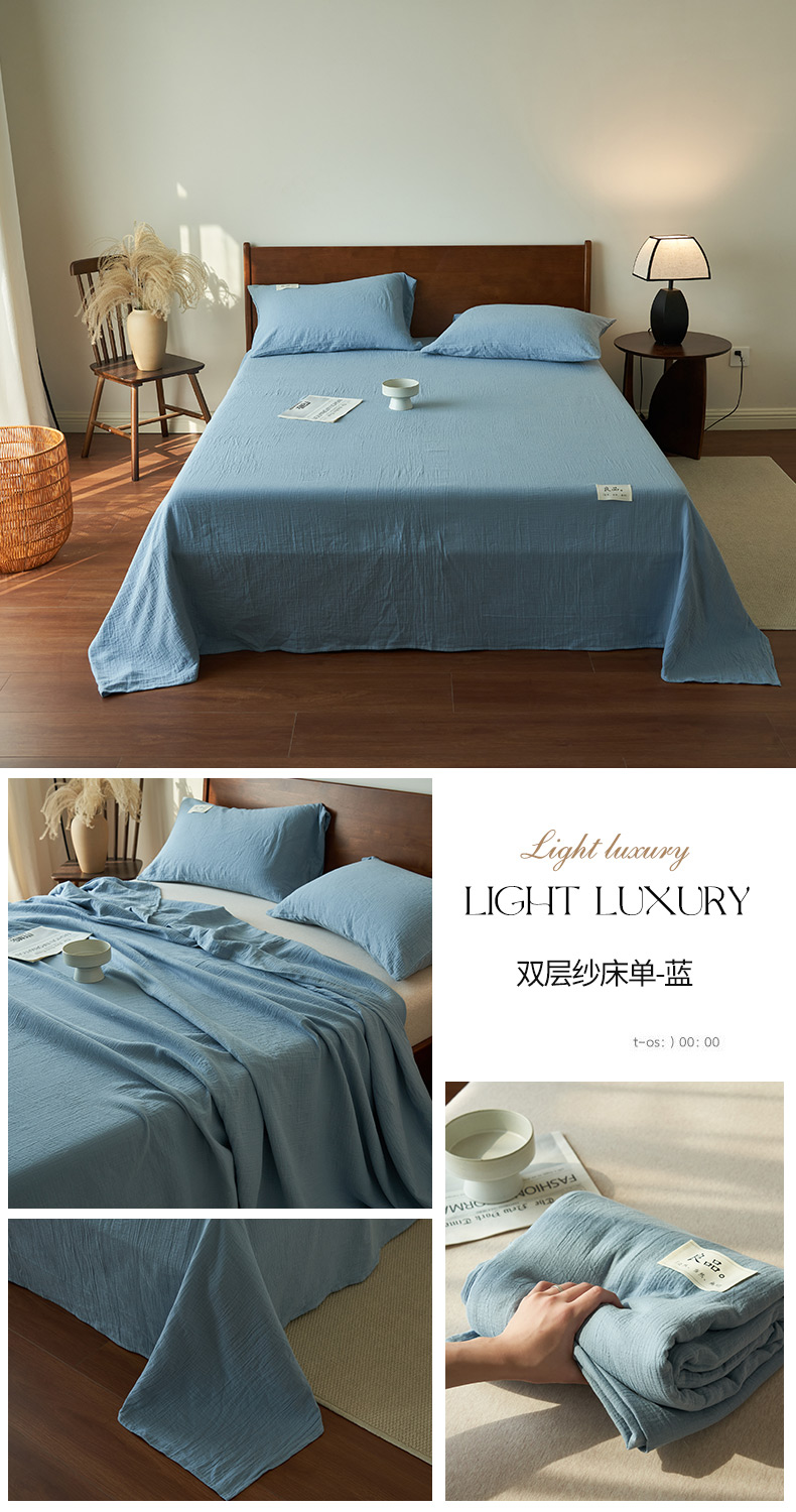 寐绸家纺 2025新款纯棉双层纱单床单 双层纱床单-米白