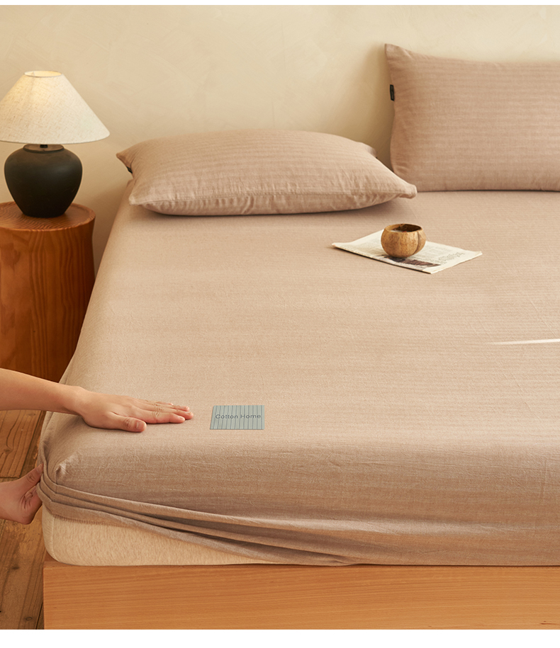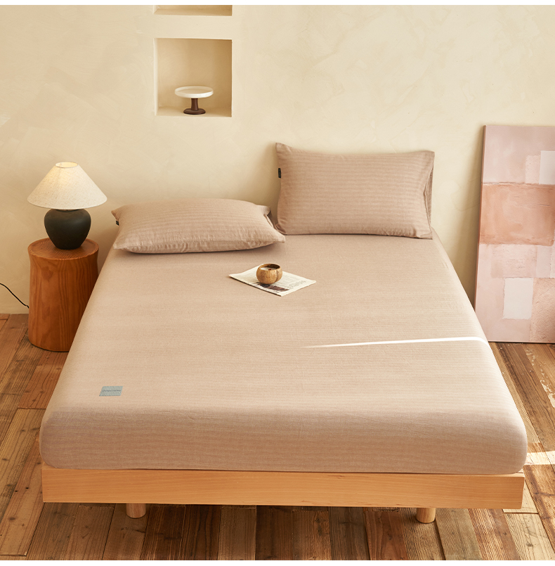 寐绸家纺 2025新款双层纱人字斜提花单床笠 人字斜床笠-浅驼