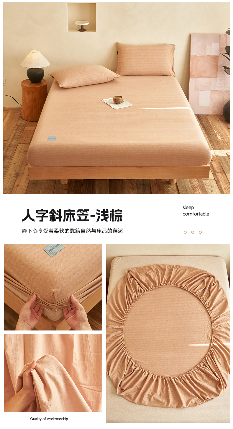 • 91家纺网 家纺一手货源 找家纺 寐绸家纺 2025新款双层纱人字斜提花单床笠 人字斜床笠-浅驼