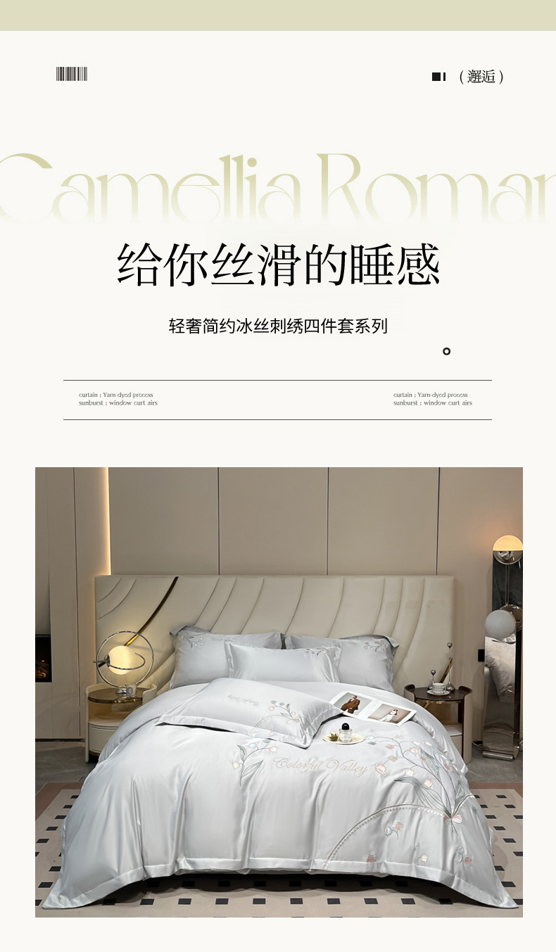 (总)菲儿家纺 2025新款轻奢简约冰丝刺绣四件套-铃兰,铃兰-灰,铃兰-兰,铃兰-粉,铃兰-米白,铃兰-紫