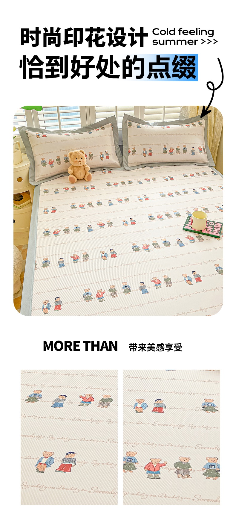 星座家纺 2025新款大斜纹复合冰丝凉席-床席款 萌熊印象