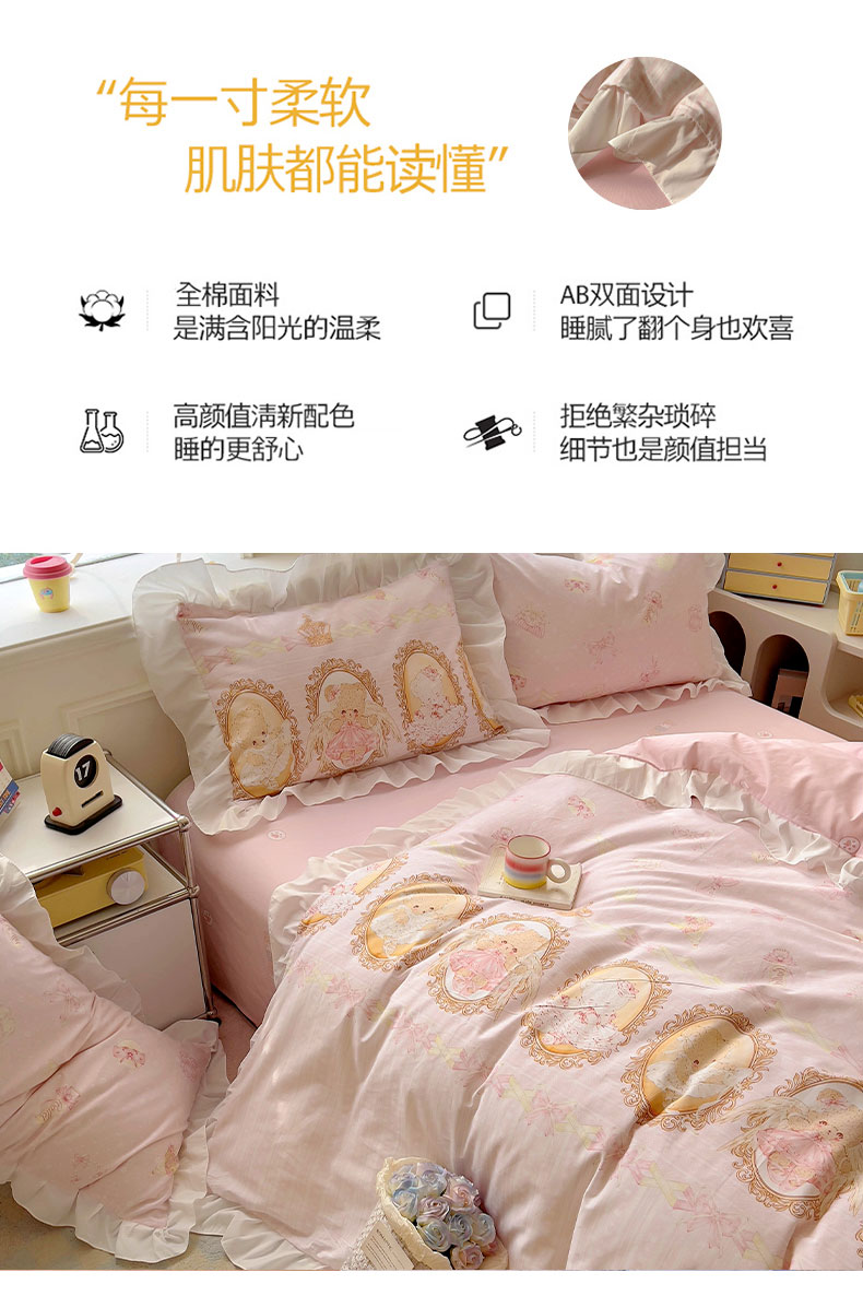 (总)浩诚 2025新款原创设计女孩全棉四件套,晚安宝贝,公主日记,快乐宝贝,美人鱼,甜心女孩,小兔女郎