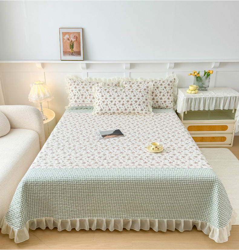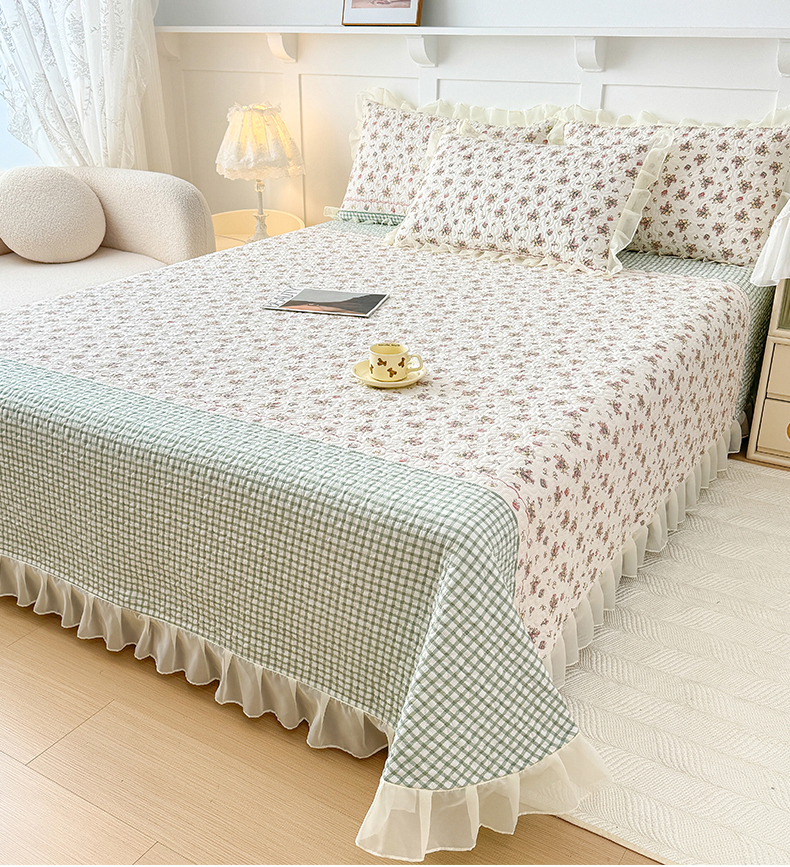 晨晨家纺 2025新款皱皱纱棉拼色床盖四件套 繁花