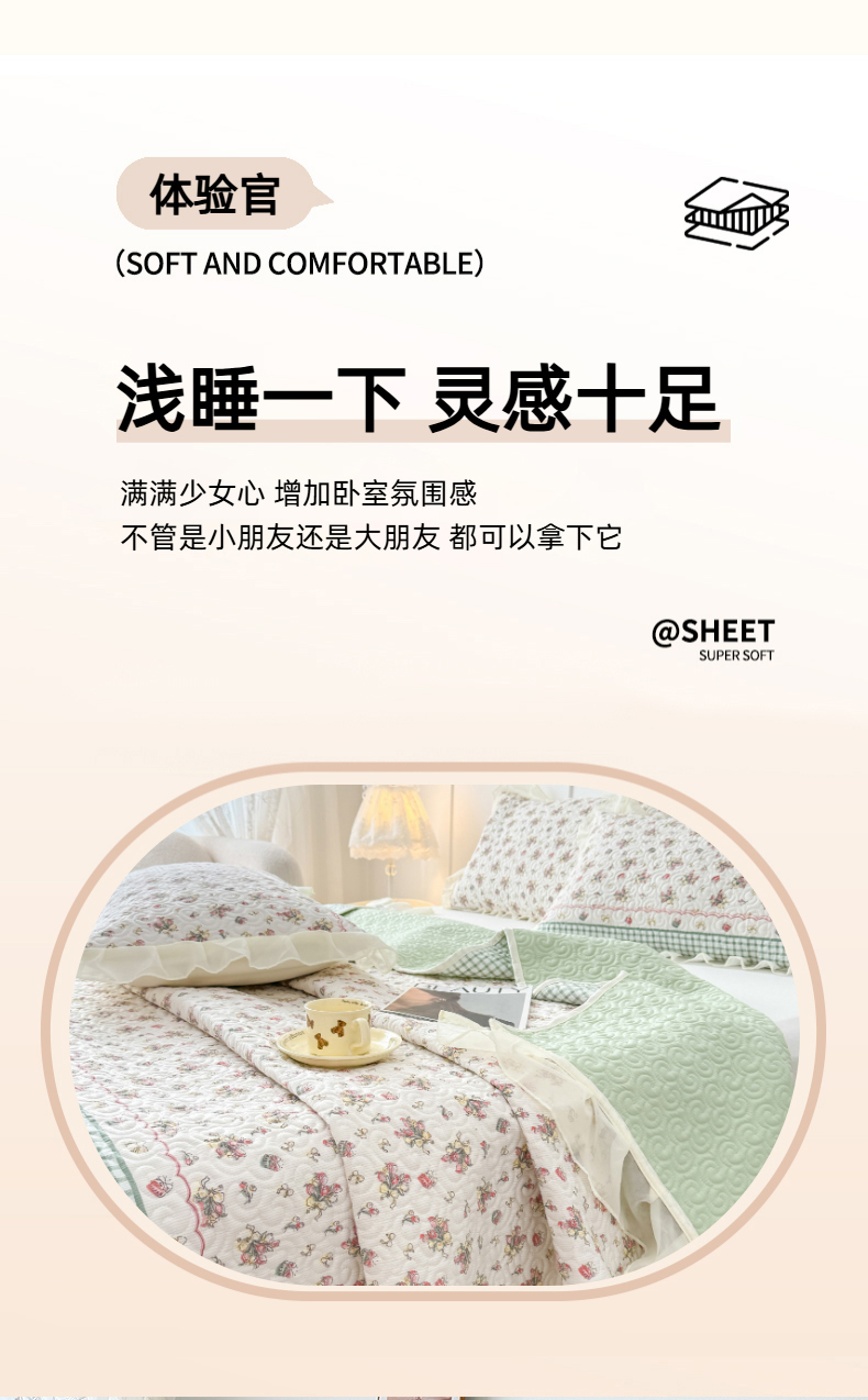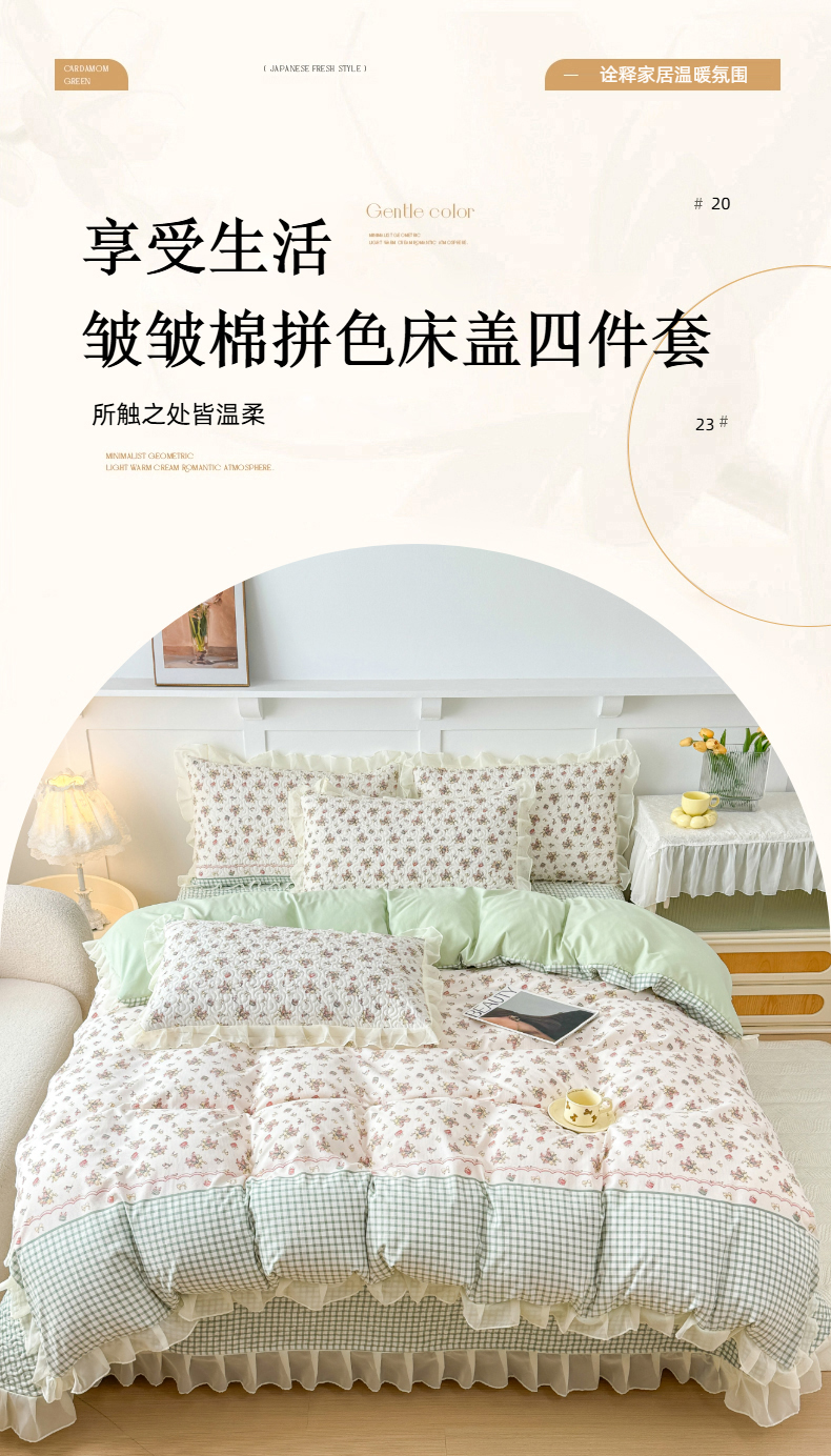 商品名称:晨晨家纺 2025新款皱皱纱棉拼色床盖四件套 繁花