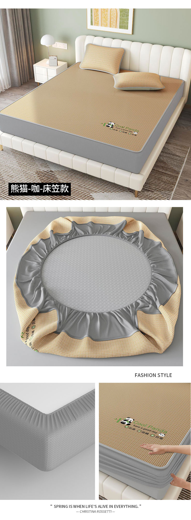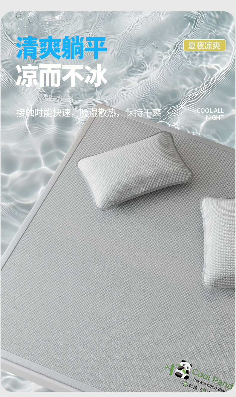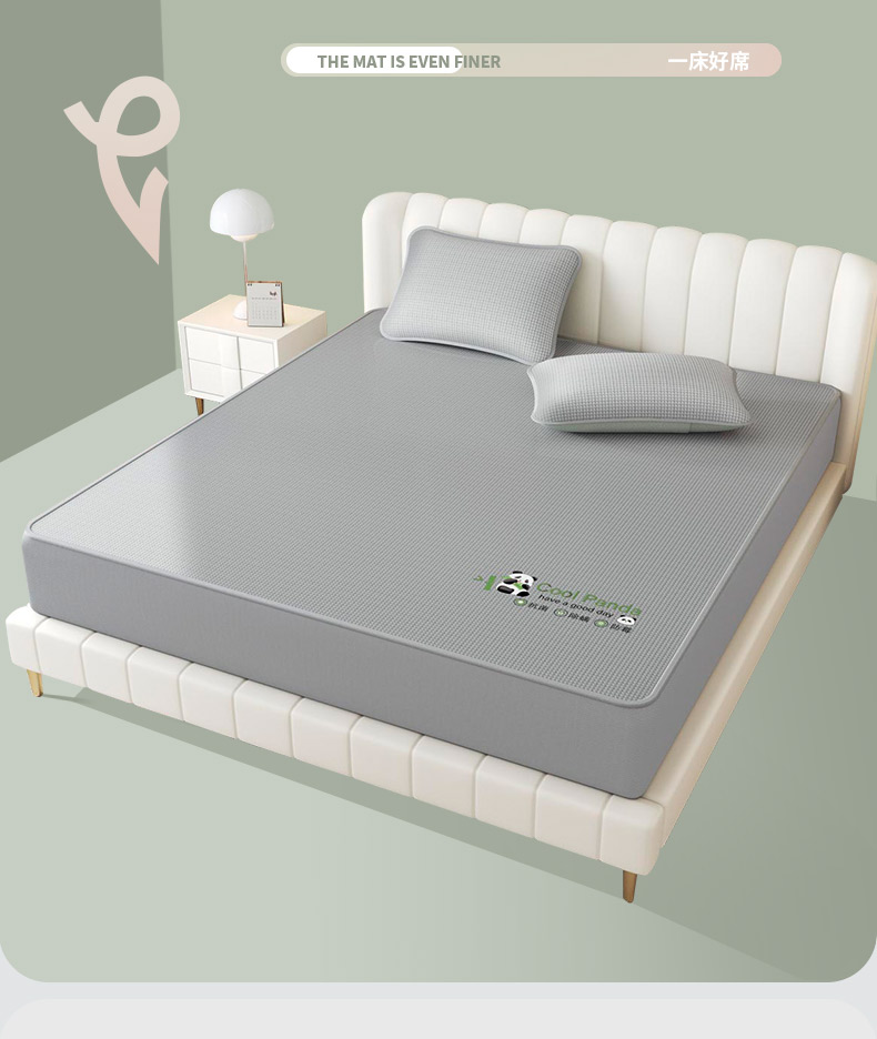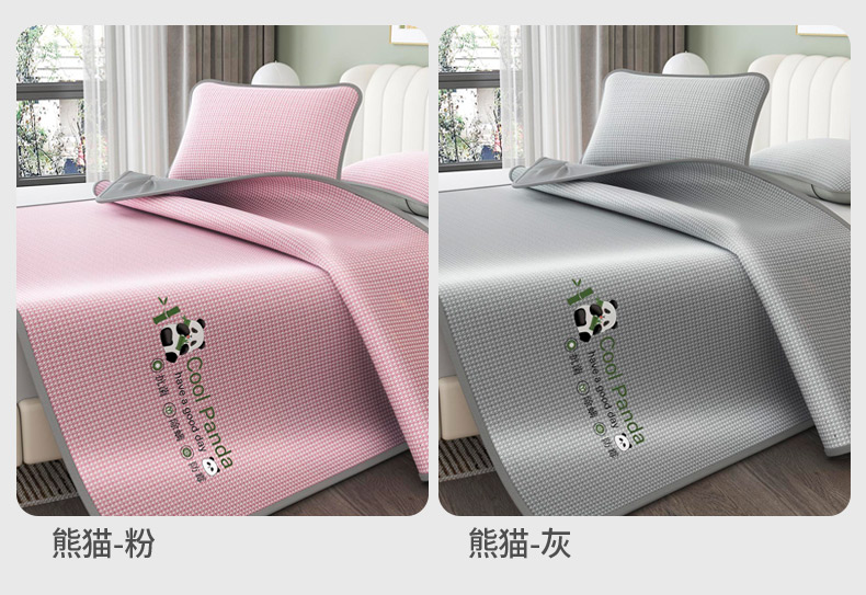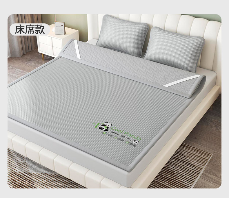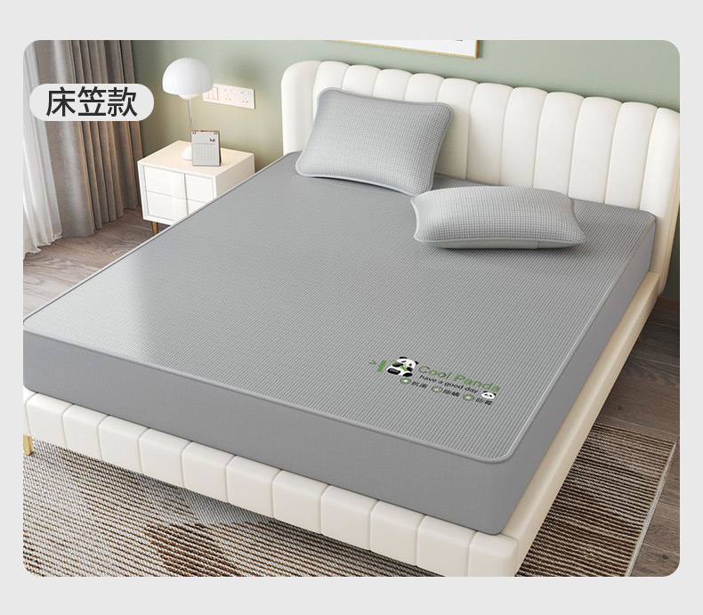 福来临家纺 2025新款清凉抗菌冰丝床席床笠-熊猫 熊猫-灰-床笠款