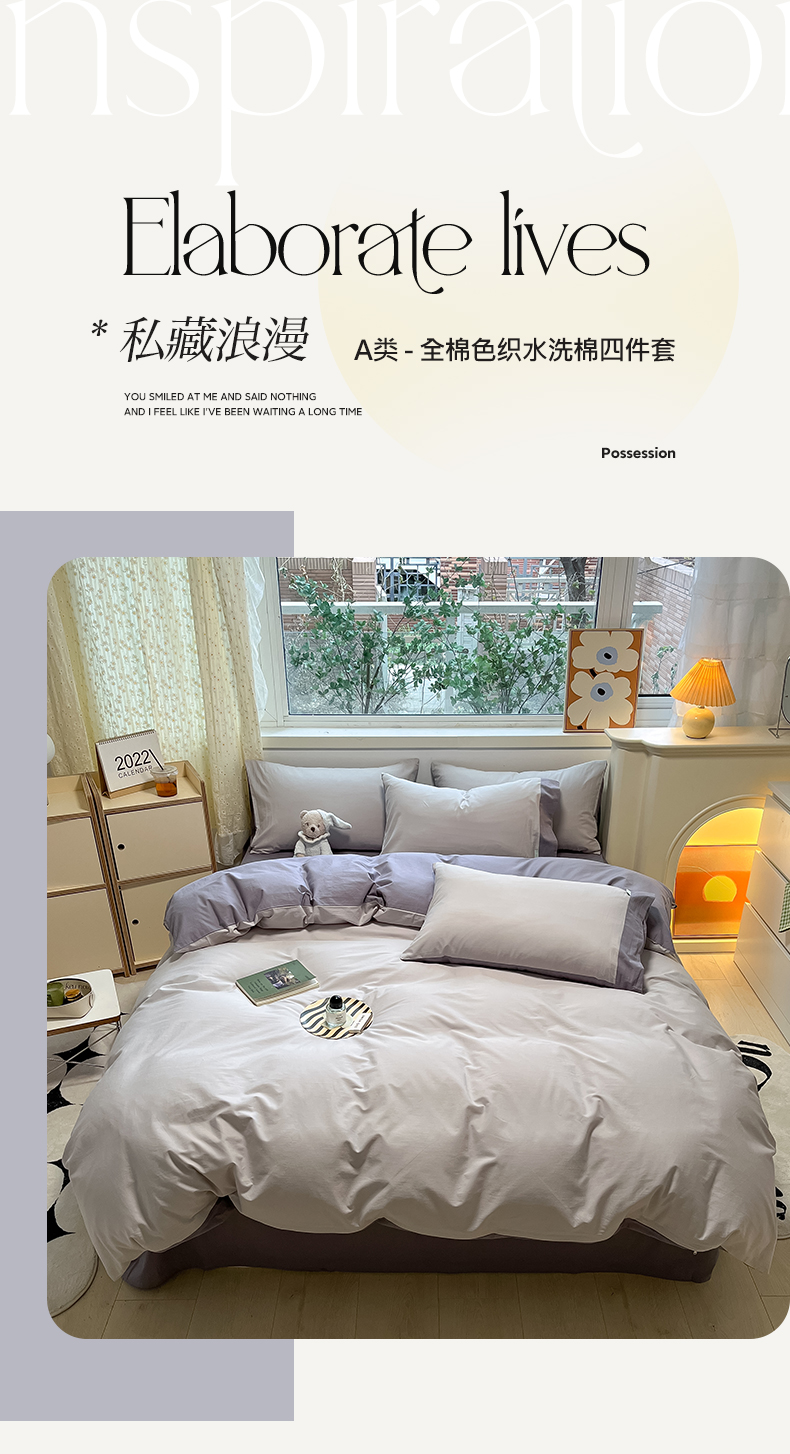 卡巴伦家纺 2025新款A版色织32支B版40支纯棉A类水洗棉四件套单被套 琥珀水晶