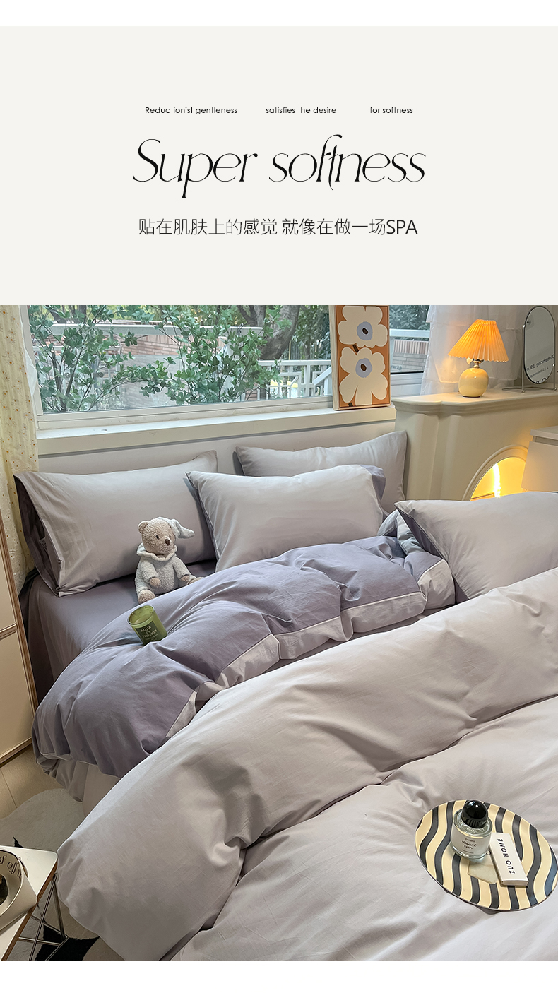 (总)卡巴伦家纺 2025新款全棉超细旦磨毛刺绣拼接四件套-旷野(会员:-20元 控价:358元),旷野-白,旷野-灰,旷野-咖,旷野-紫