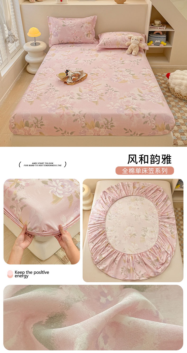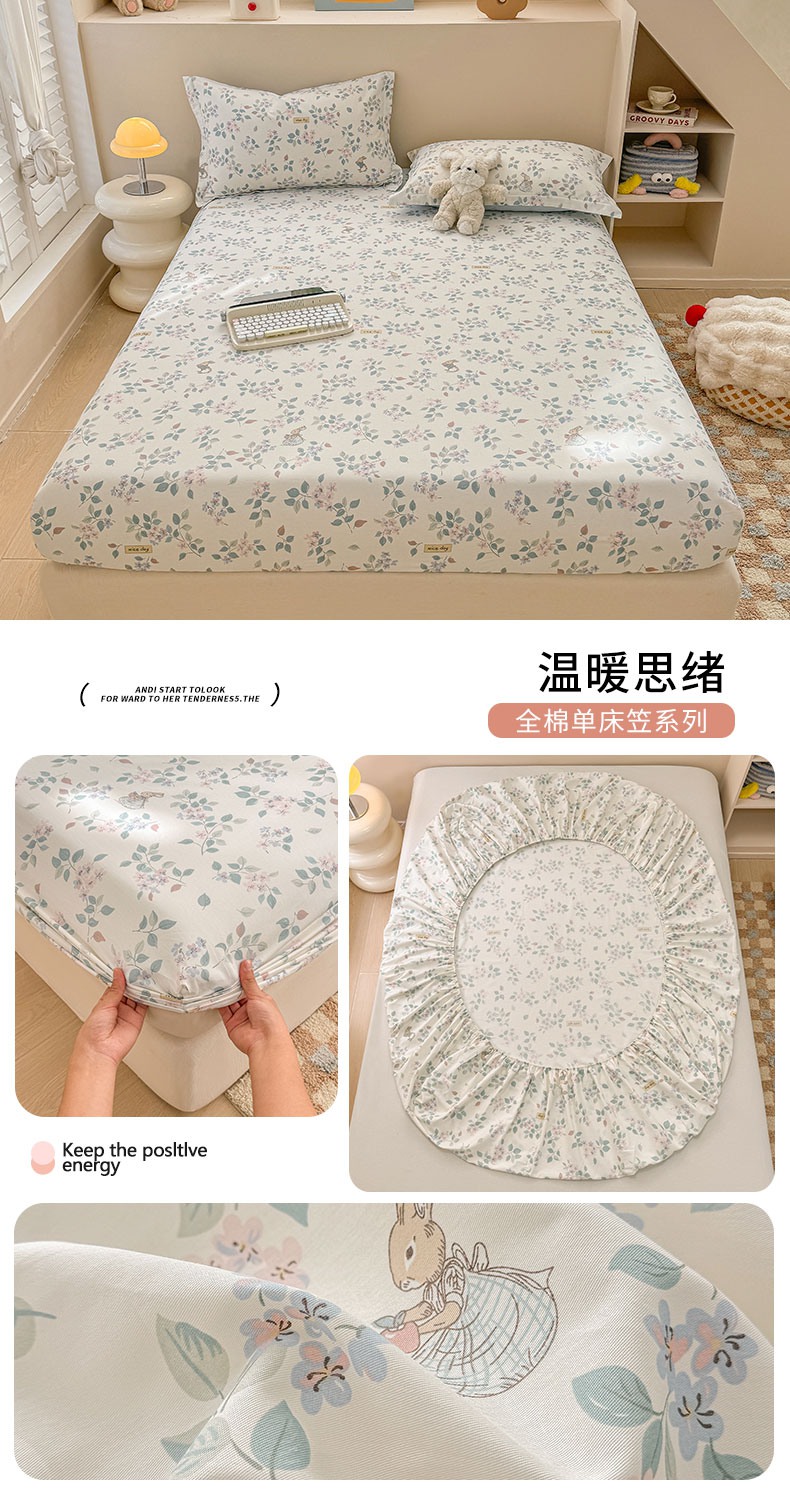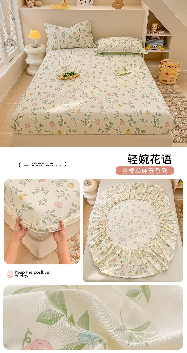 商品名称:2025新款12868全棉套件单品系列二单床笠 暖阳绿意