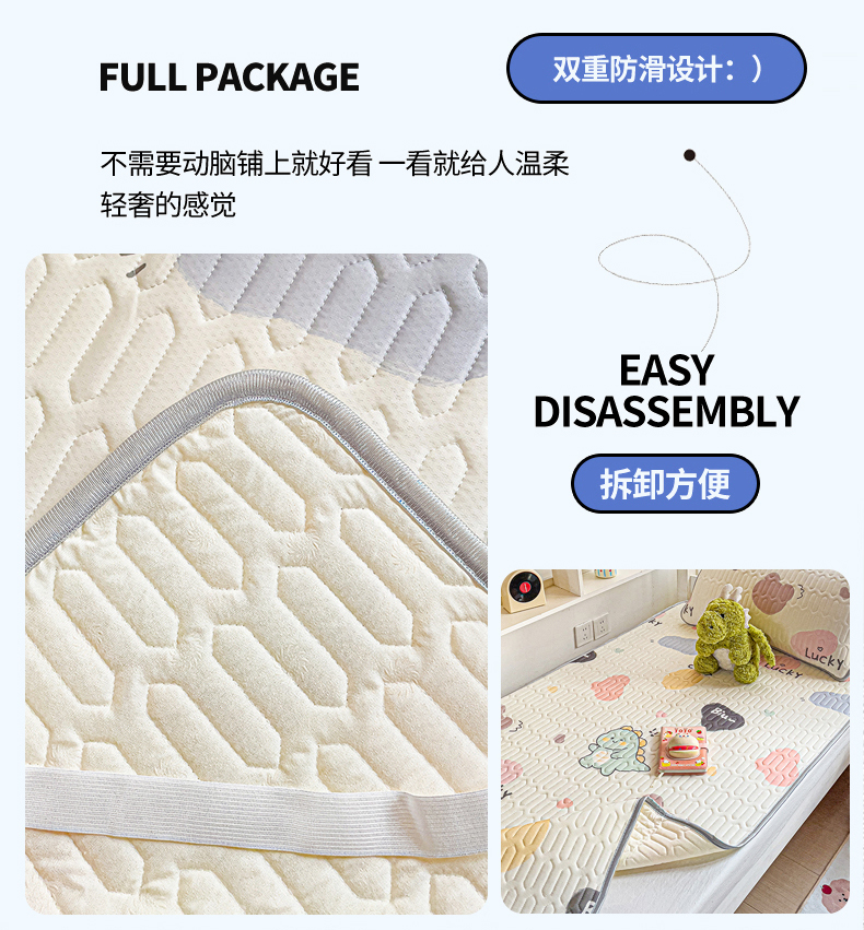 (总)富馨莱 2025新款牛奶绒夹棉床垫床盖支持一件定制,飞行太空,格子熊猫,孔雀蓝,恐龙伙伴,抹茶绿,七彩草莓,轻奢白,轻奢灰,小精灵,小柯基,樱桃兔,脏脏熊,组合图