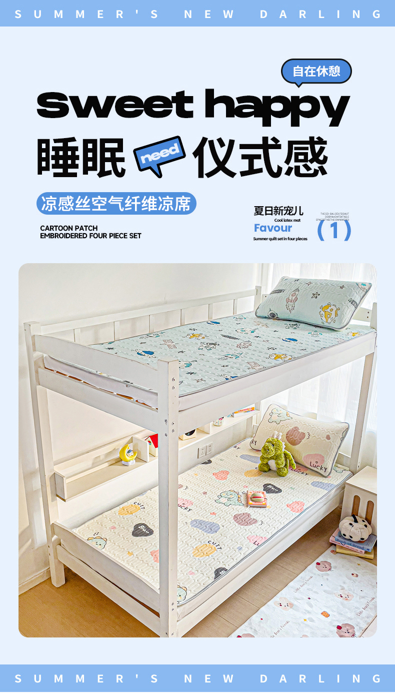 • 91家纺网 家纺一手货源 找家纺 富馨莱 2025新款A类凉感丝空气纤维凉席学生款 萌萌龙