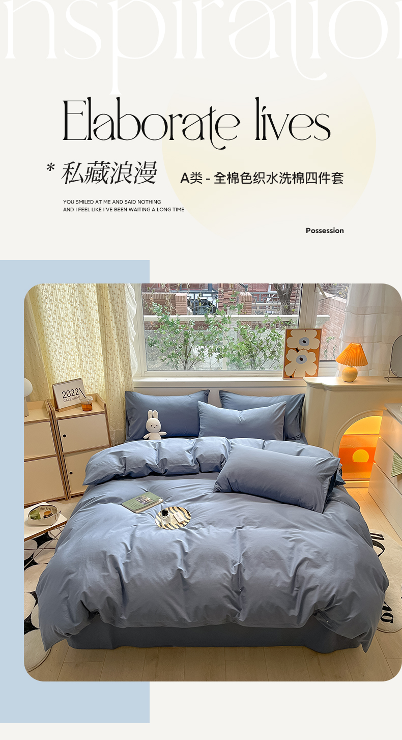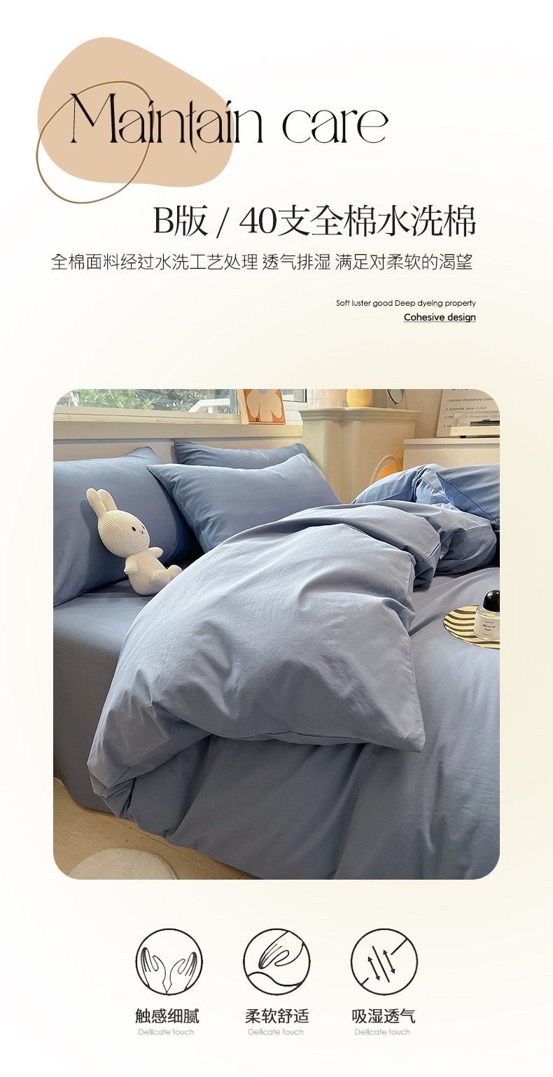卡巴伦家纺 2025新款40支纯棉A类水洗棉四件套风格2 宝石 蓝