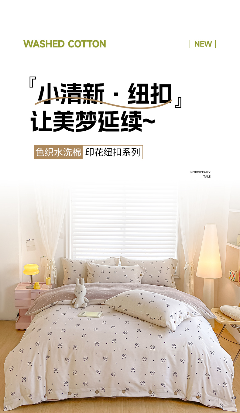 (总)星窝家纺 2025新款纽扣款水洗棉印花四件套,安蝶,初昕粉色,初昕咖,春屿,嘟嘟熊,花上枝咖,花上枝蓝,乐恬波点,觅裳,茉婉紫,莫奈粉,沐瑶黄,奶糖兔米,芊朵