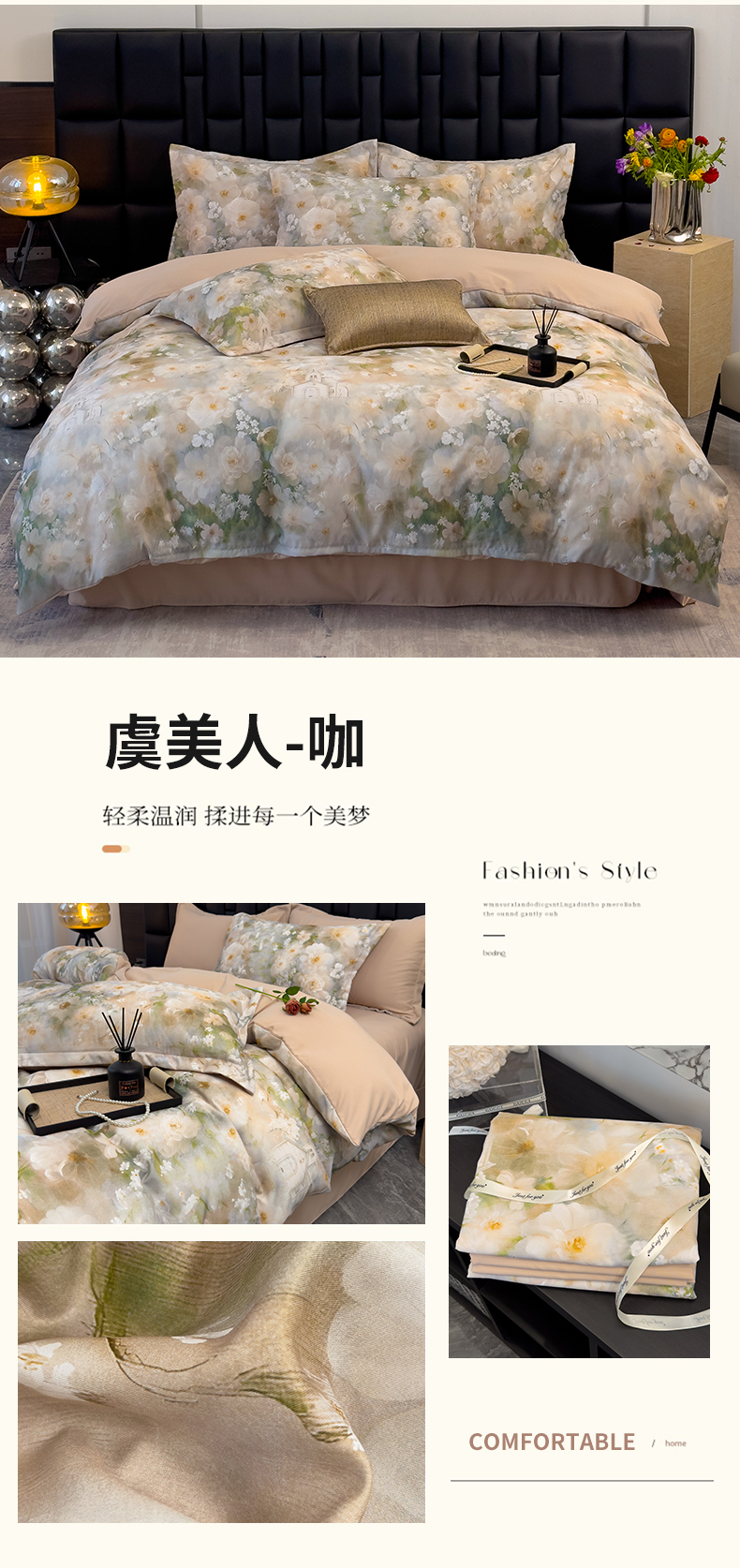 商品名称:竹合 2025新款数码印花轻奢凉感四件套 虞美人咖