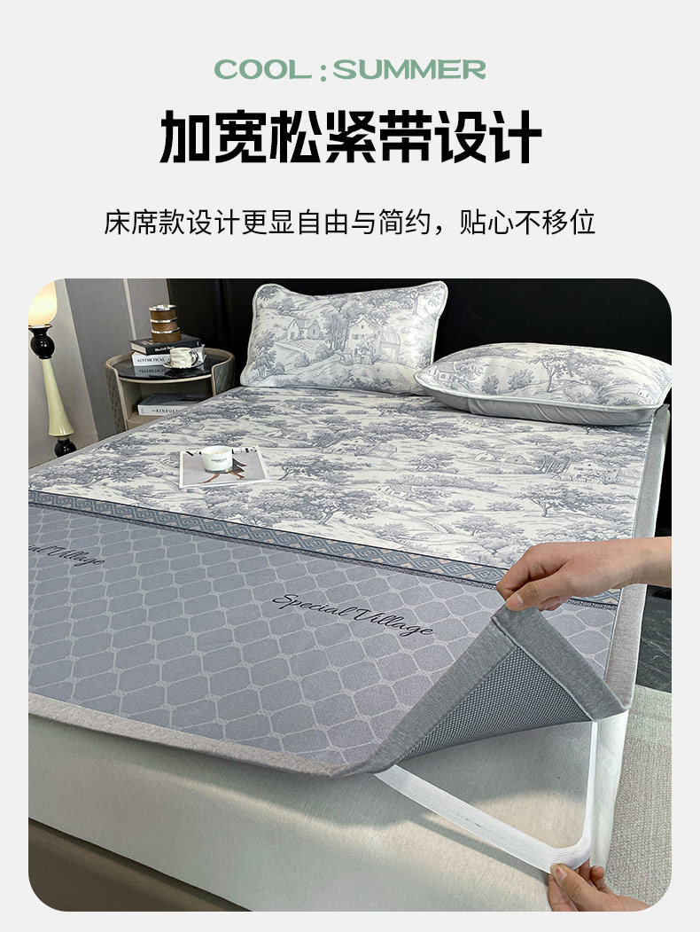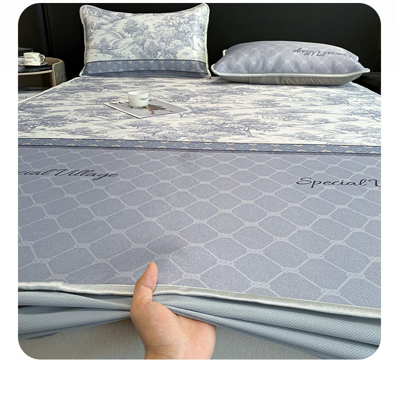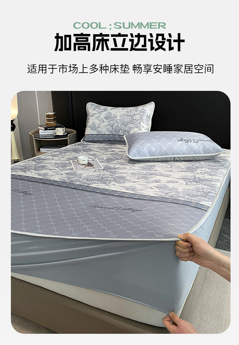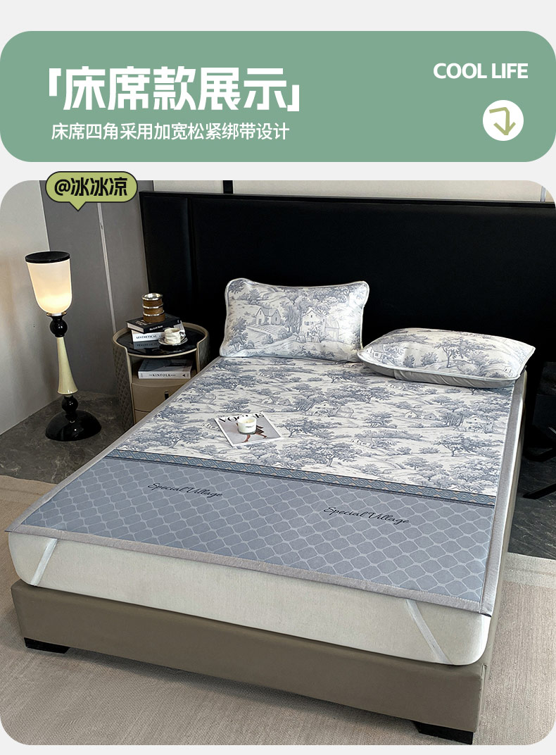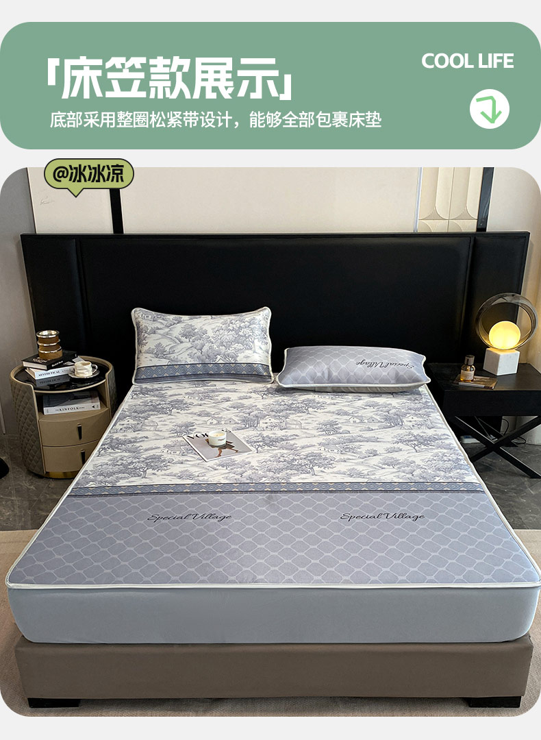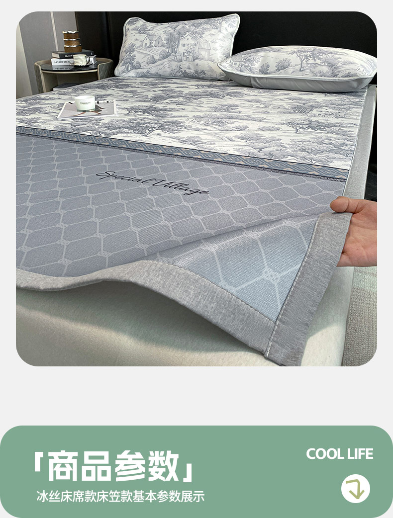 商品名称:2025新款印花冰丝凉席反面无纺布 冰丝-床笠款-花海