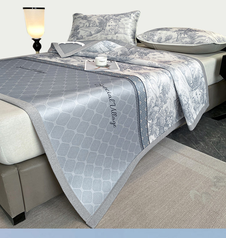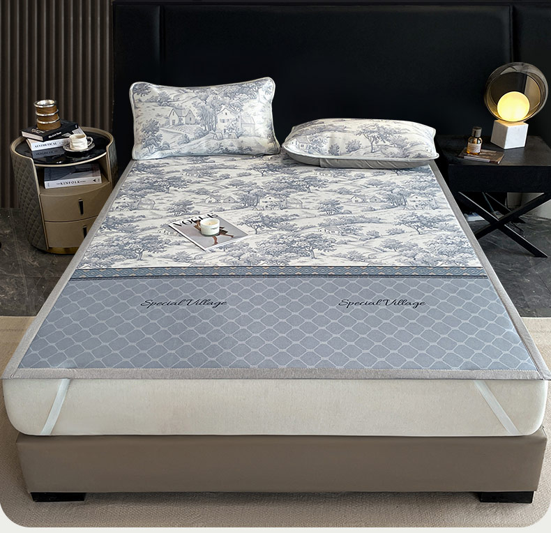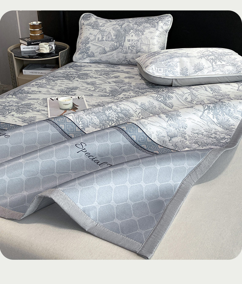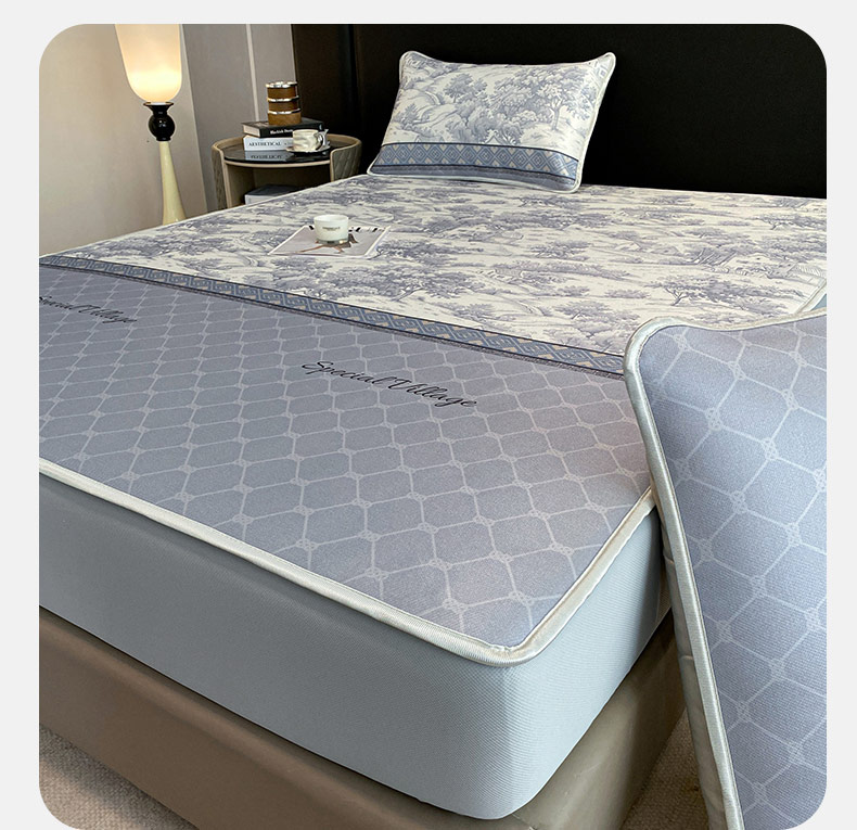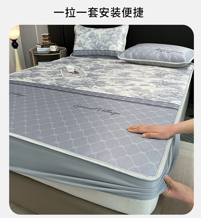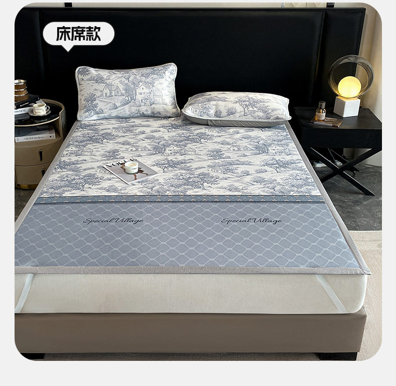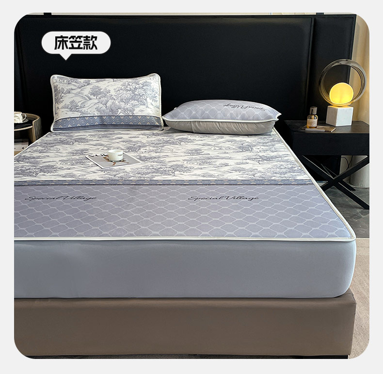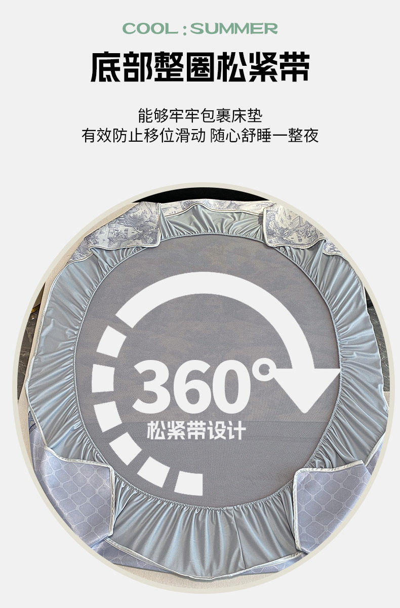 商品名称:2025新款印花冰丝凉席反面无纺布 冰丝-床笠款-花海