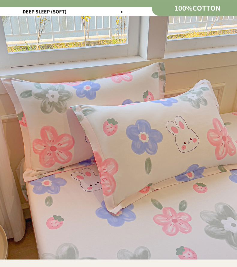 拾物记 2025新款A类无荧光全喷气全棉12868单枕套 花间小兔