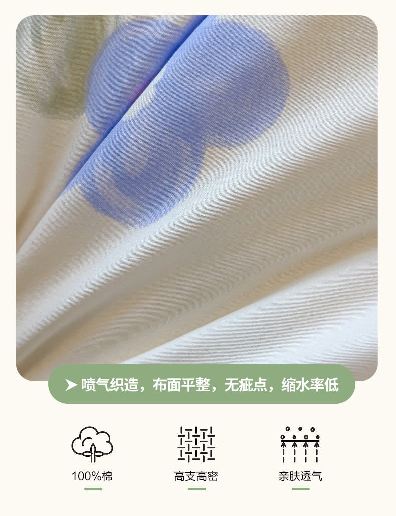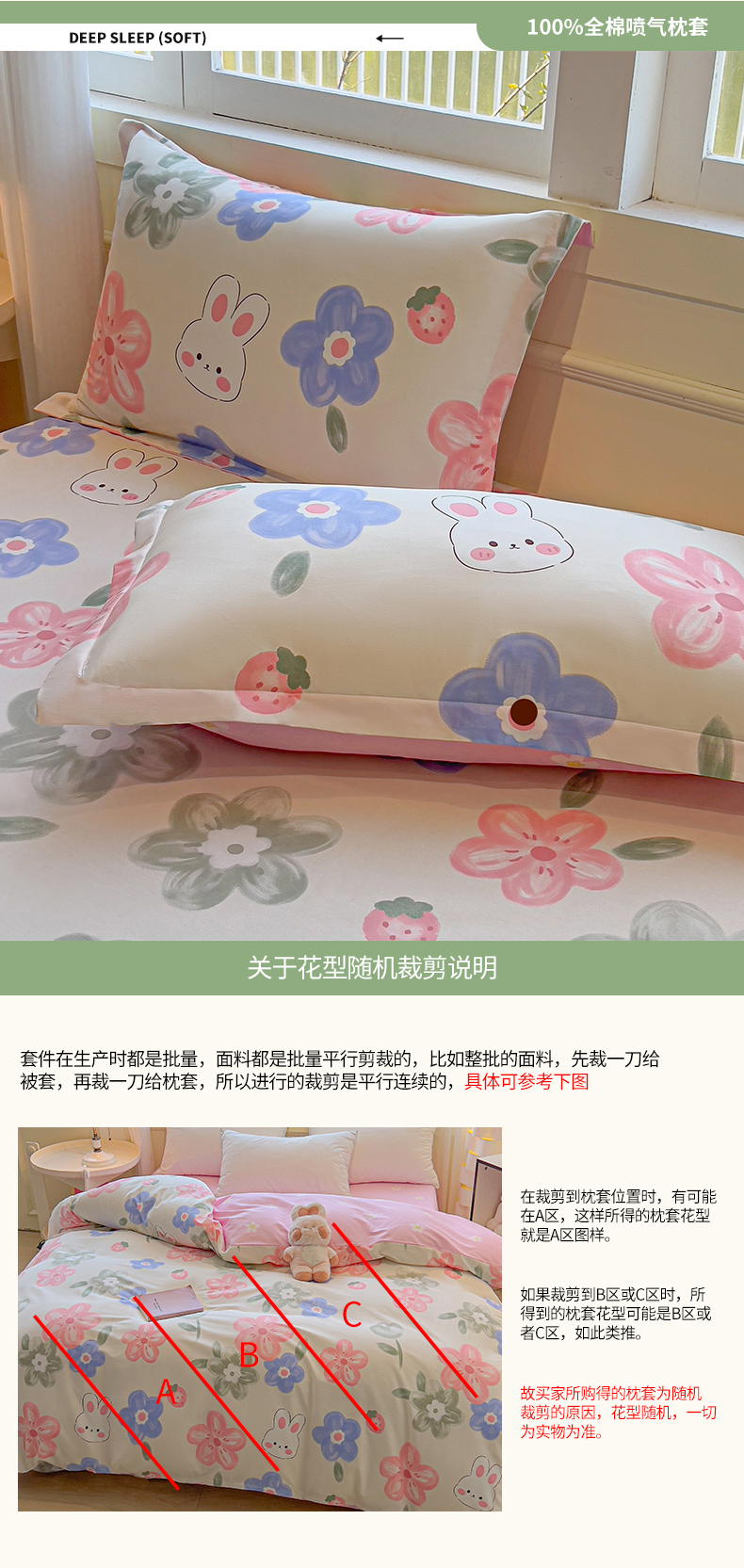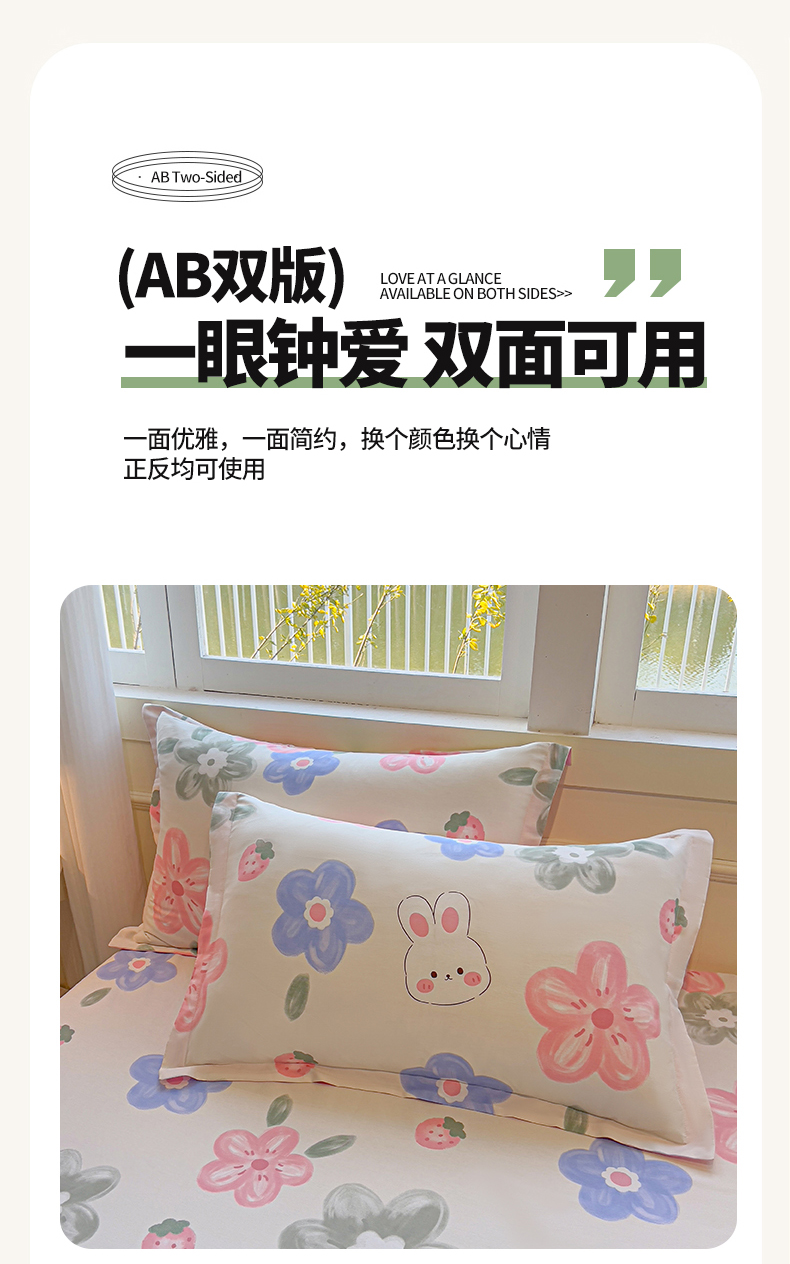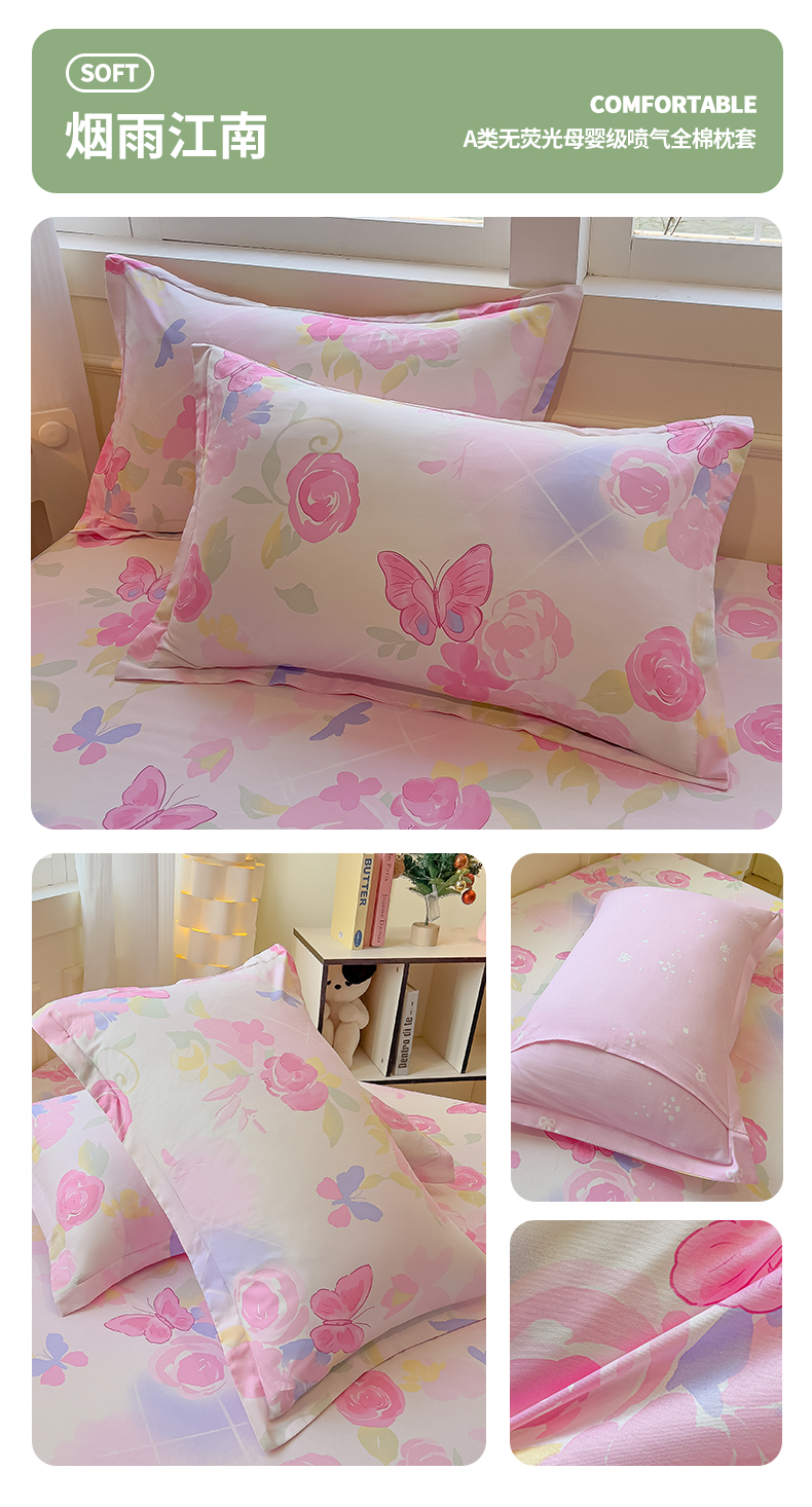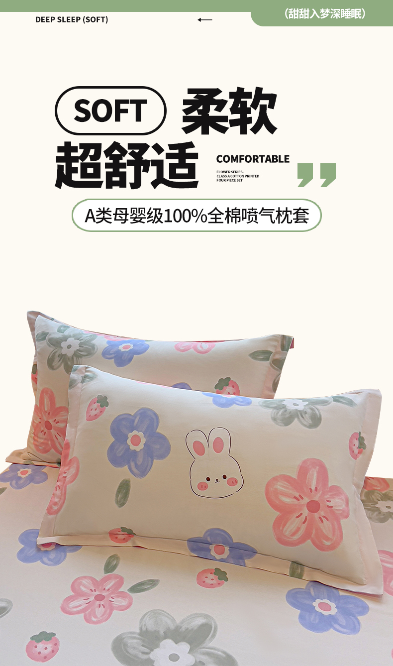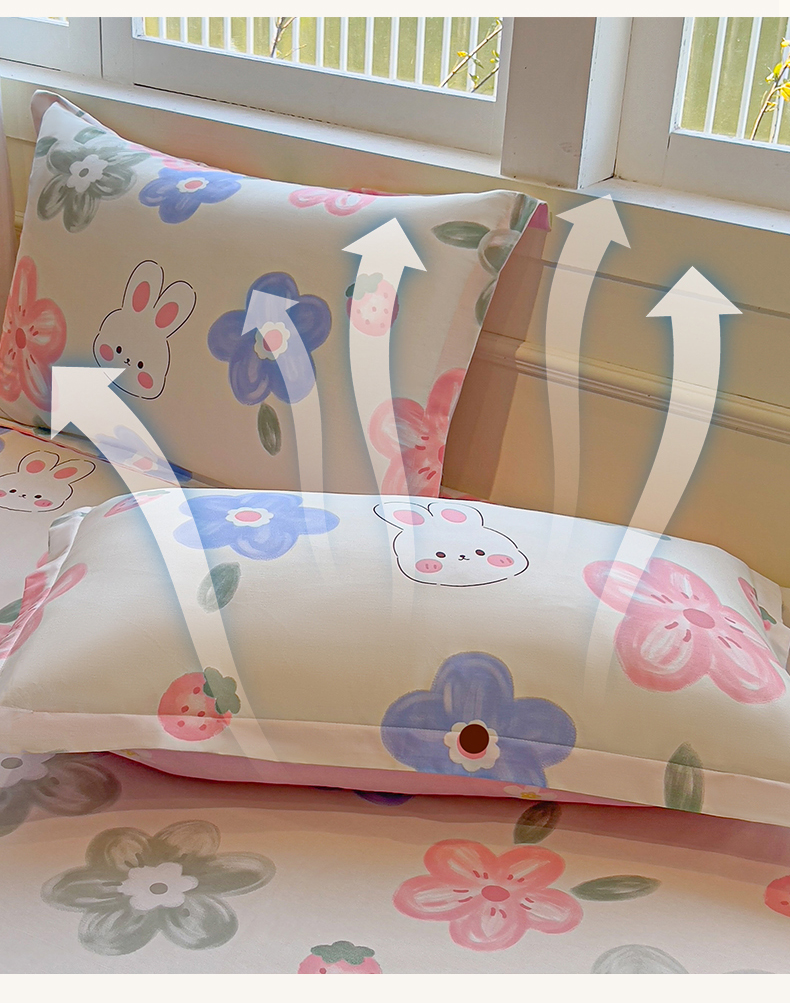 商品名称:拾物记 2025新款A类无荧光全喷气全棉12868单枕套 花间小兔