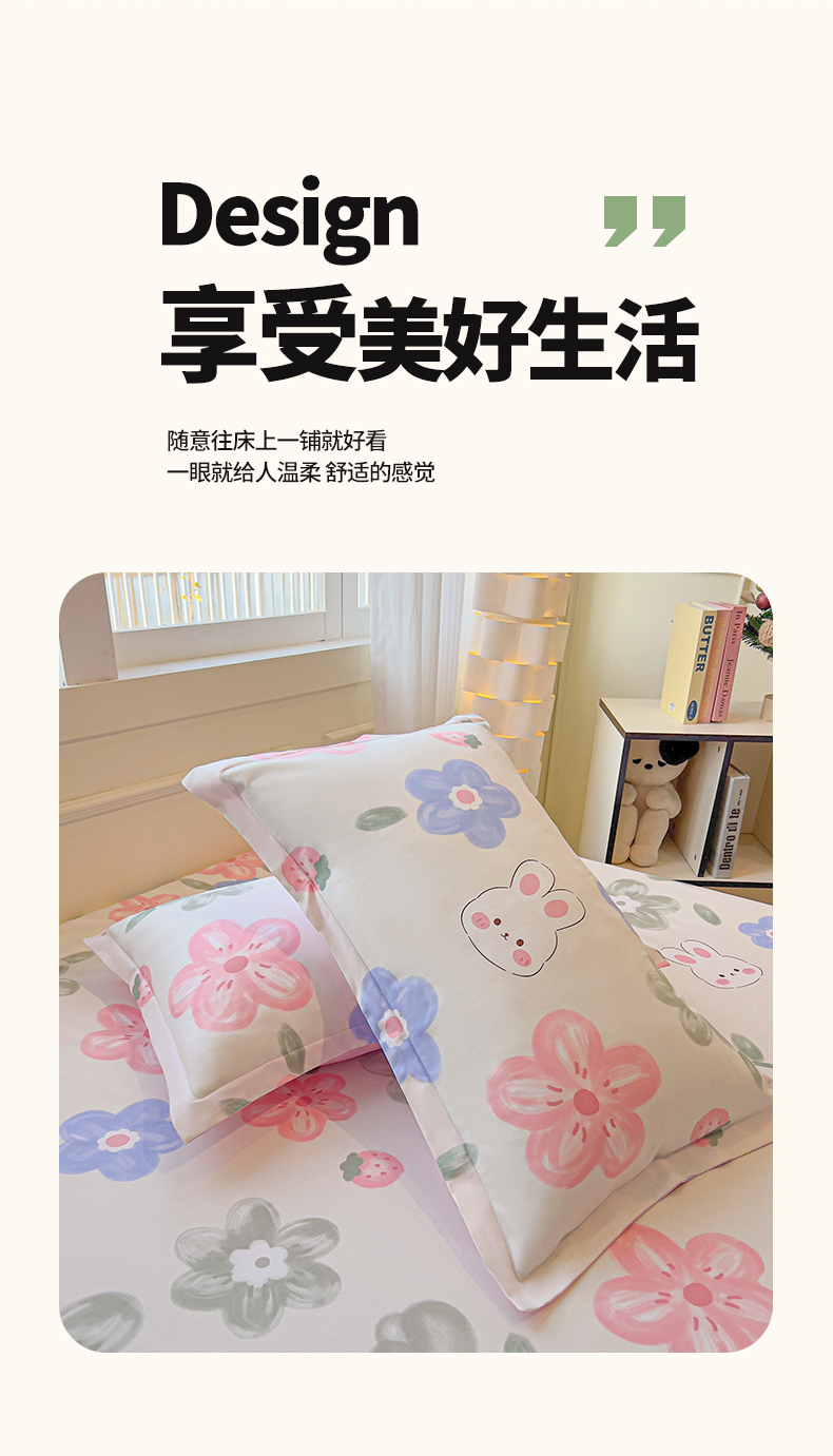(总)拾物记 2023新款喷气全棉卡通小清新系列单床单,欢乐萌熊,奶油兔-红