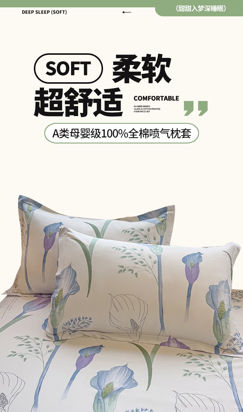 商品名称:拾物记 2025新款A类无荧光全喷气全棉12868单枕套 青花