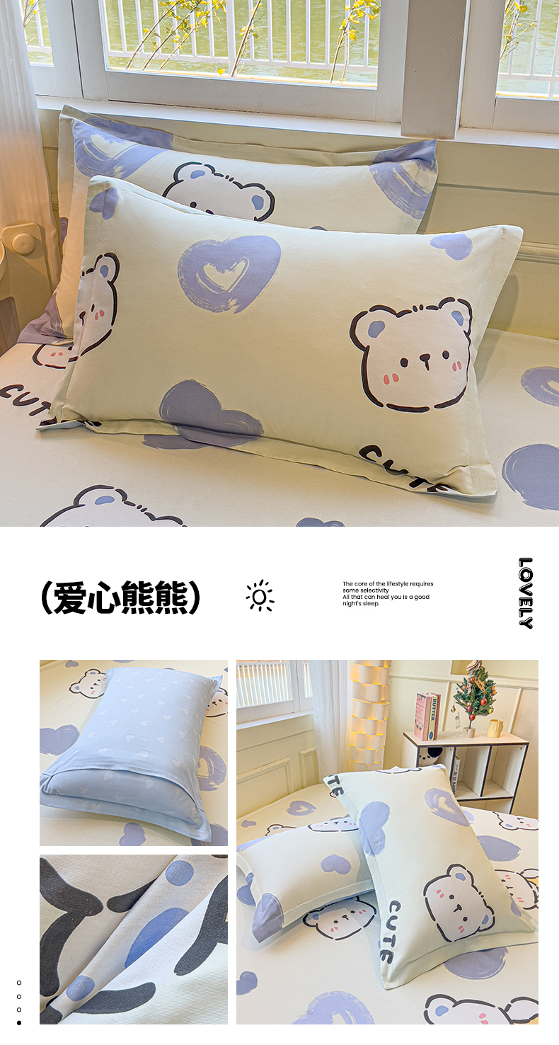 (总)拾物记 2023新款喷气全棉卡通小清新系列单床单,欢乐萌熊,奶油兔-红