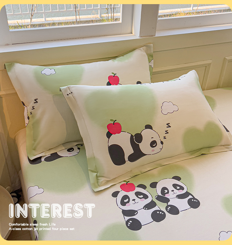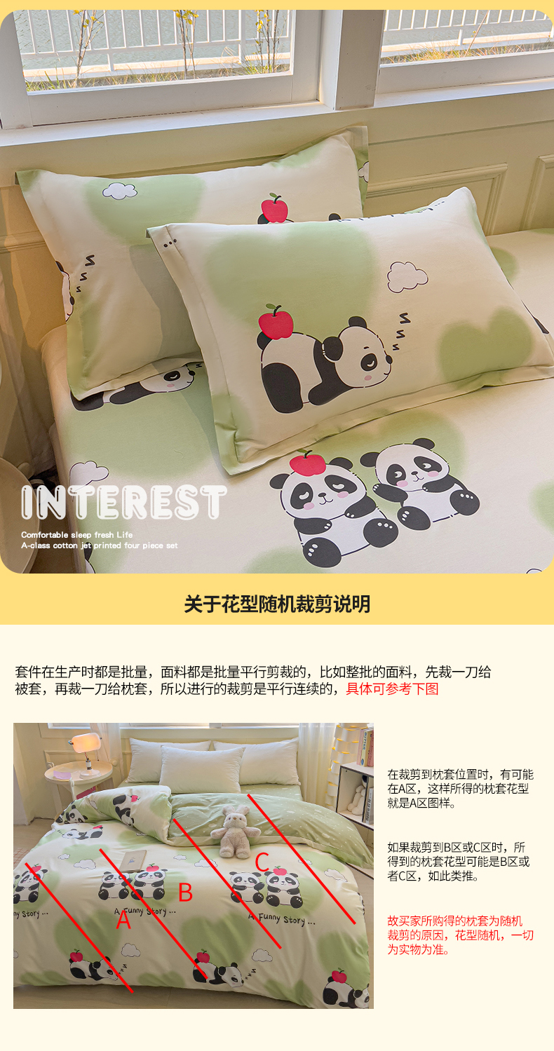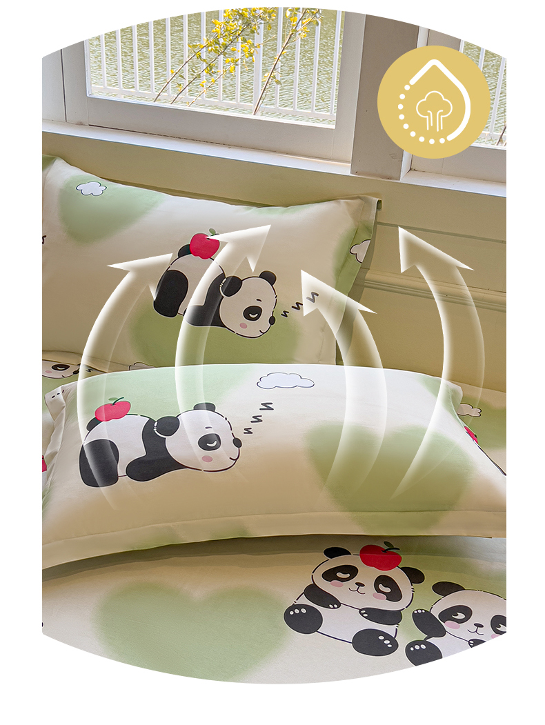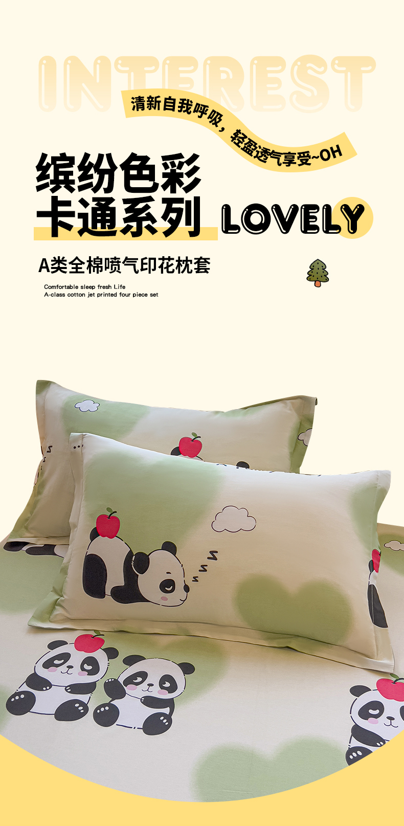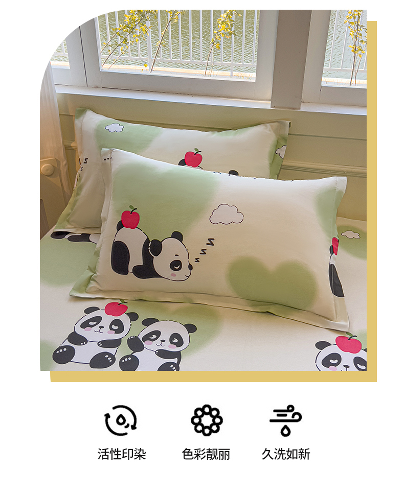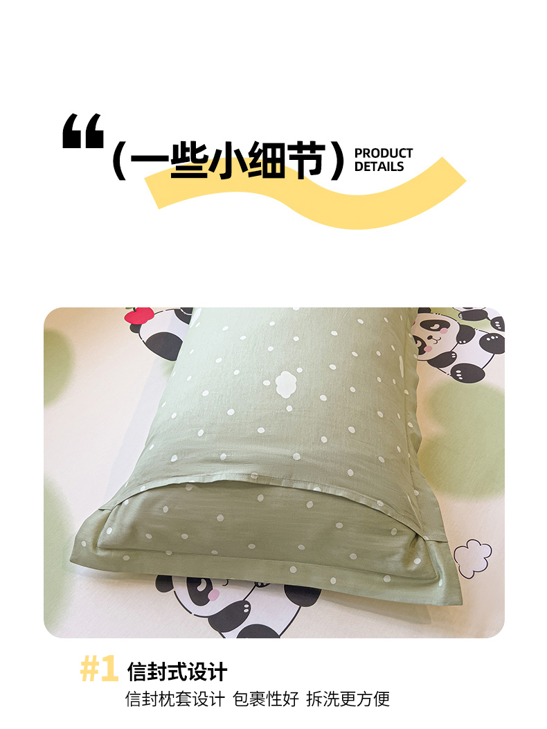商品名称:拾物记 2025新款A类无荧光全喷气全棉12868单枕套 熊猫趣事