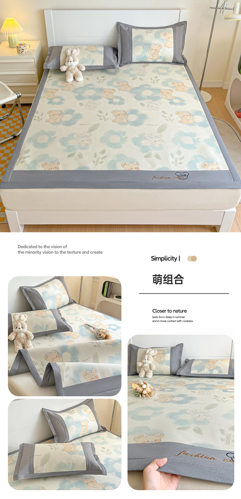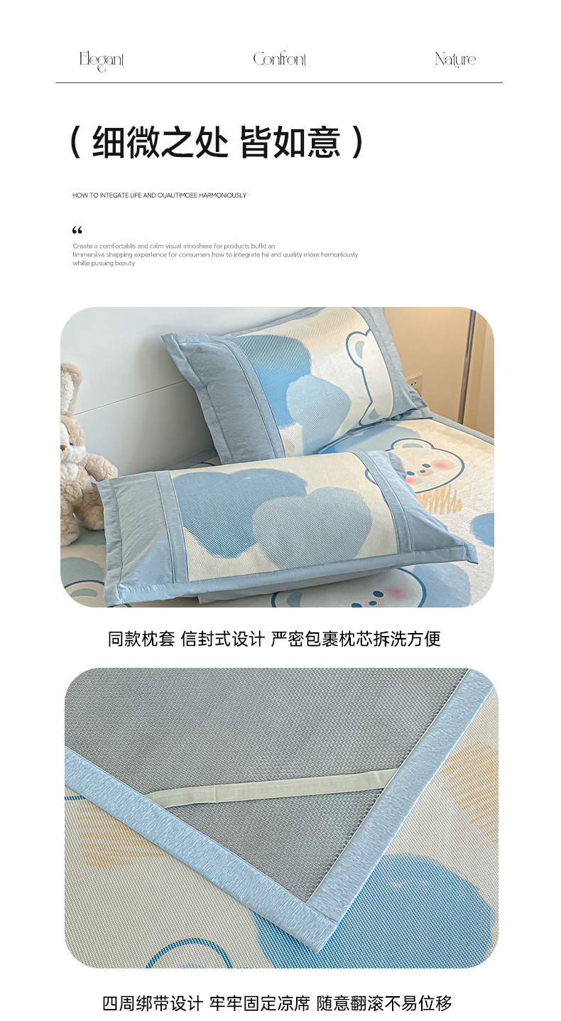(总)2025新款印花冰藤凉席-学生款,杯具熊,冰块蓝,粉熊猫,可哒鸭,萝卜兔,太空人,小兰花,小企鹅