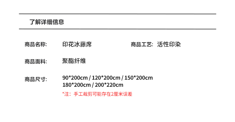 商品名称:阿亮家居 2025新款印花冰藤席凉席 小兰花