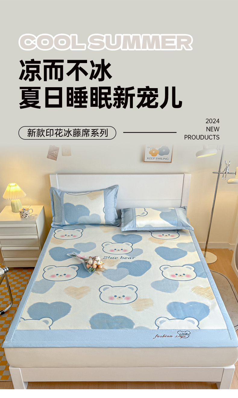 (总)2025新款印花冰藤凉席-学生款,杯具熊,冰块蓝,粉熊猫,可哒鸭,萝卜兔,太空人,小兰花,小企鹅