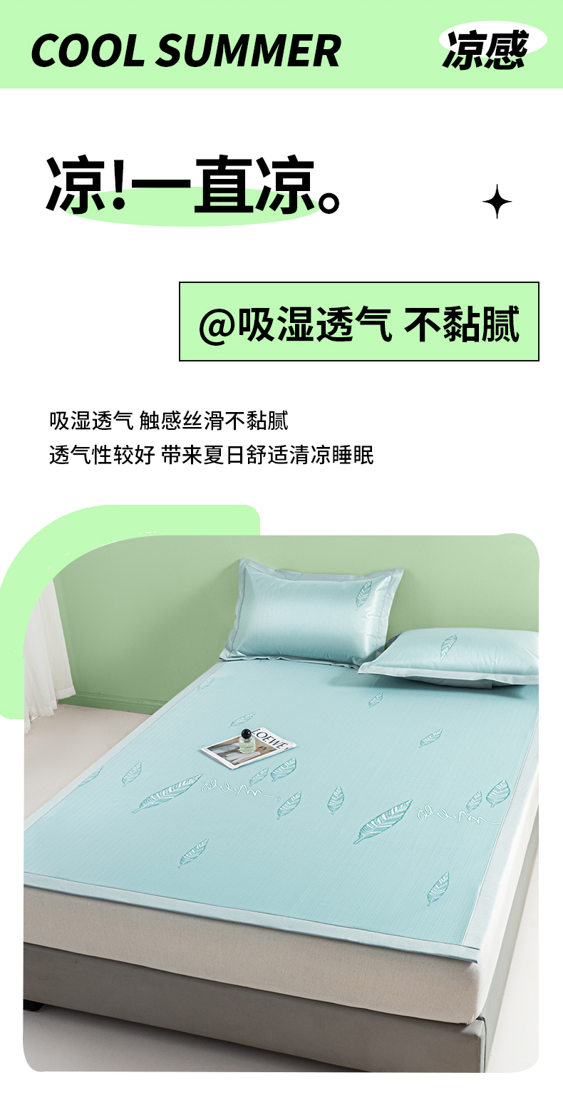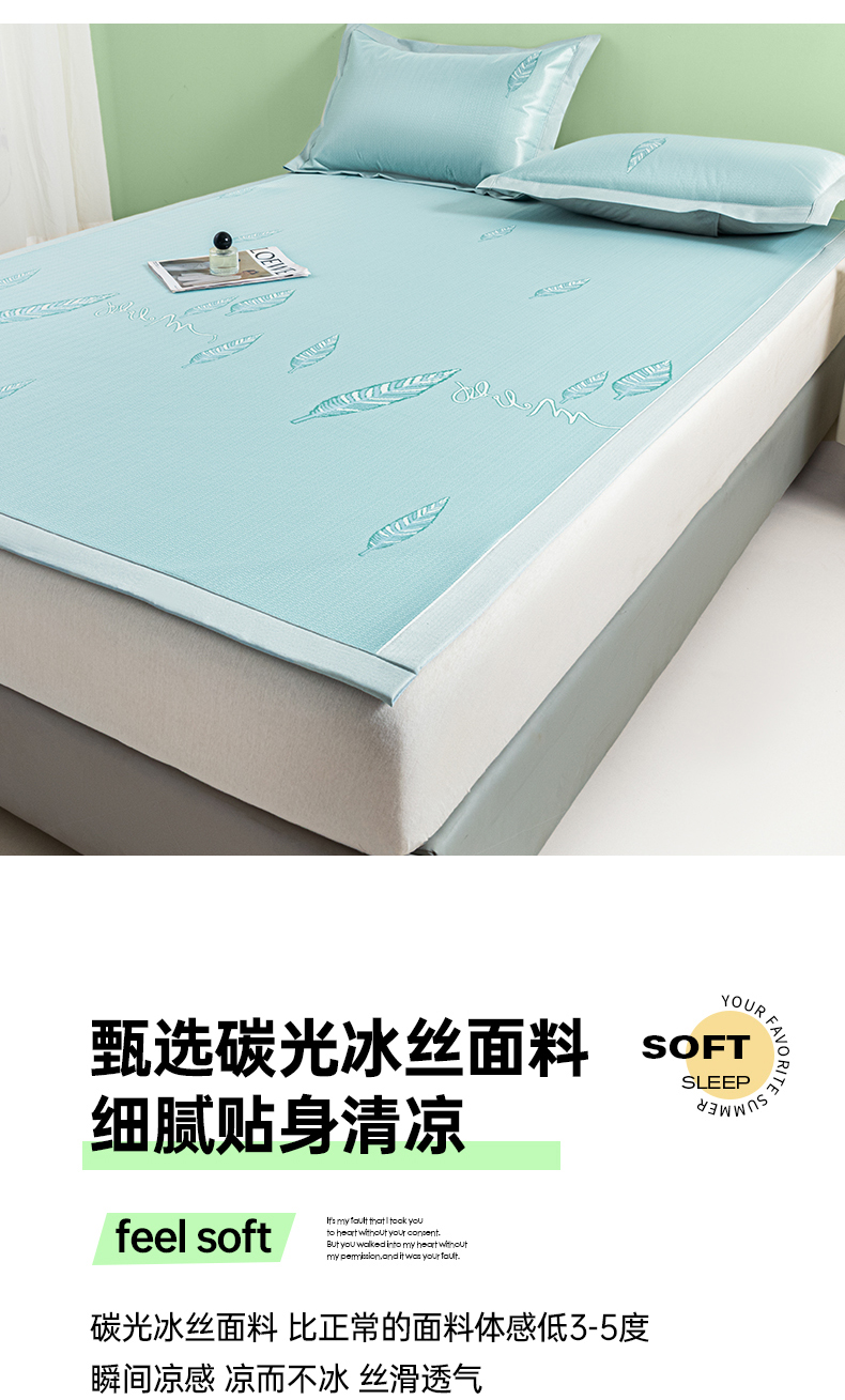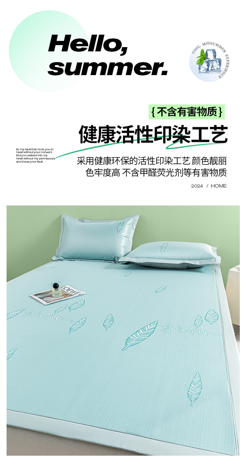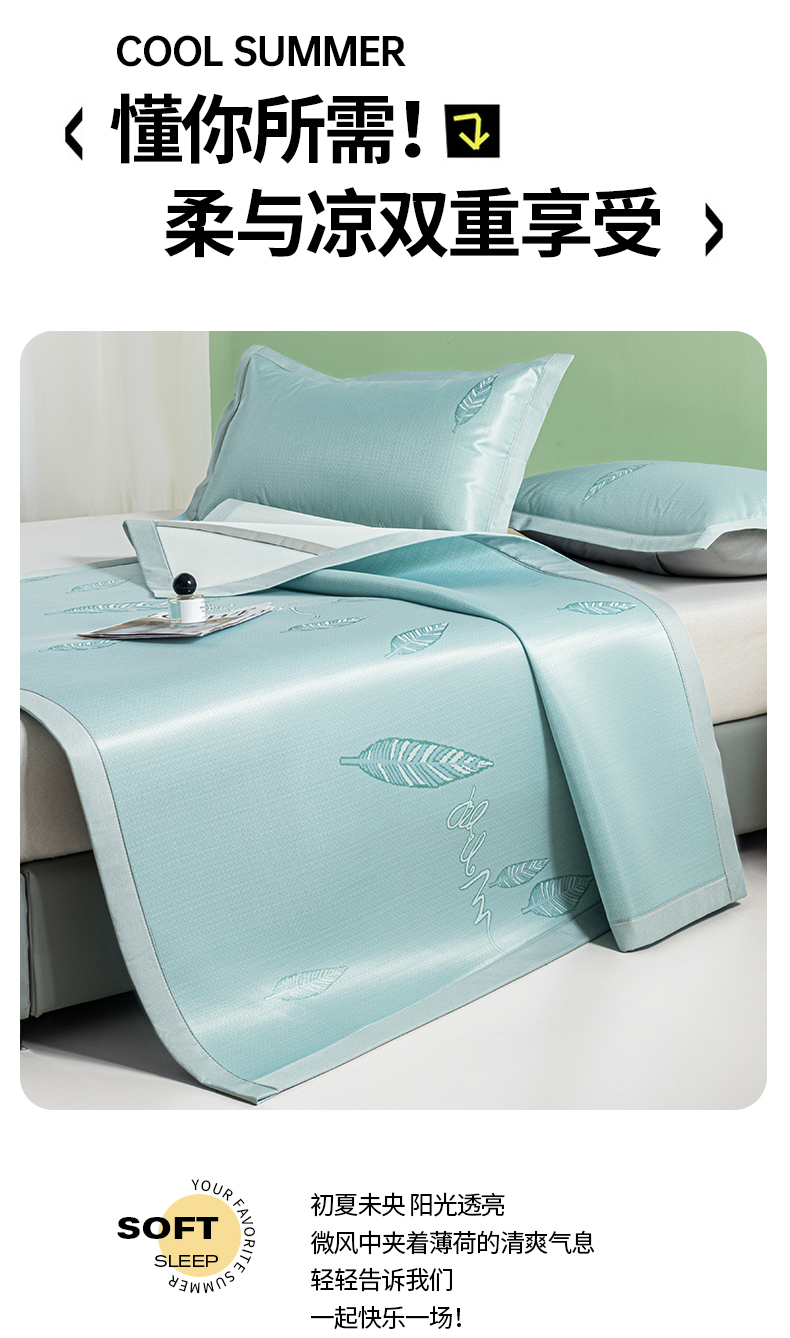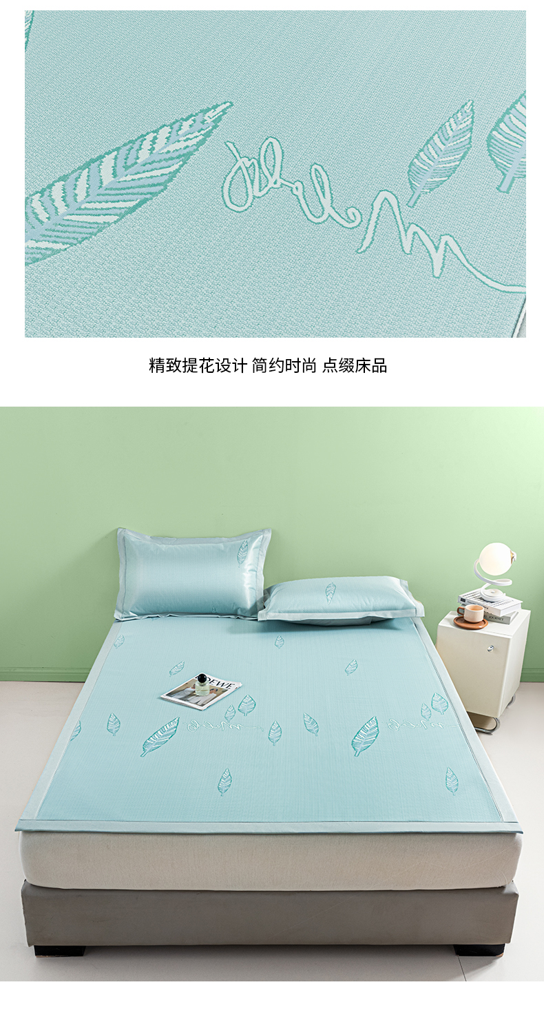 商品名称:阿亮家居 2025新款凉席碳光席冰丝席三件套 叶语芊芊