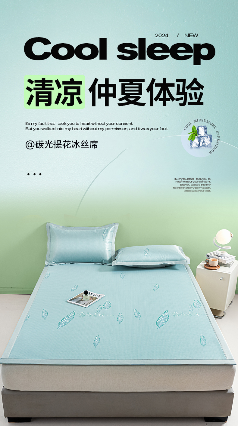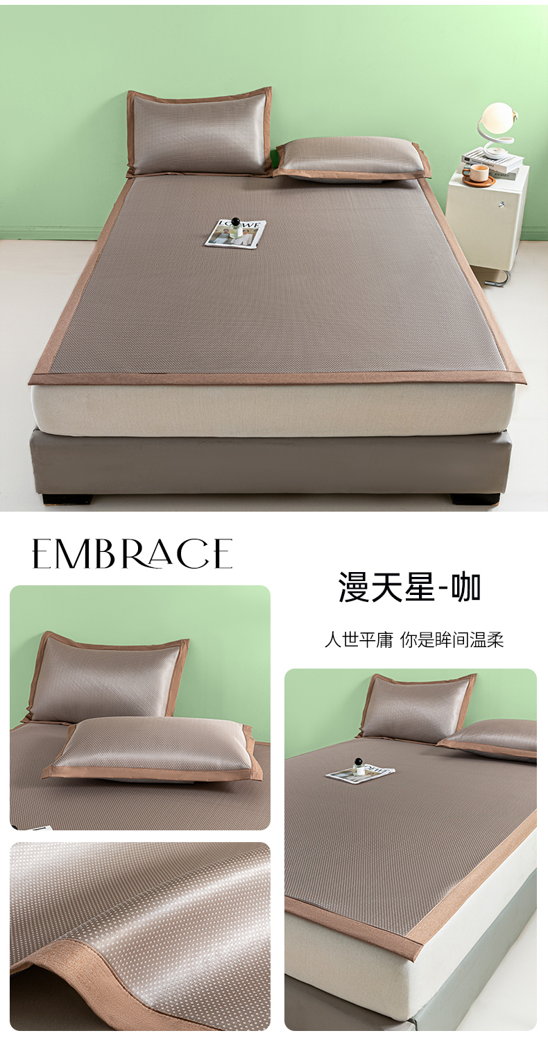 阿亮家居 2025新款凉席碳光席冰丝席三件套 叶语芊芊