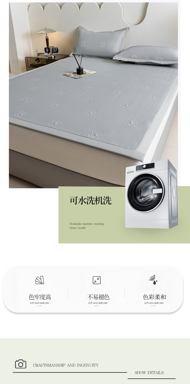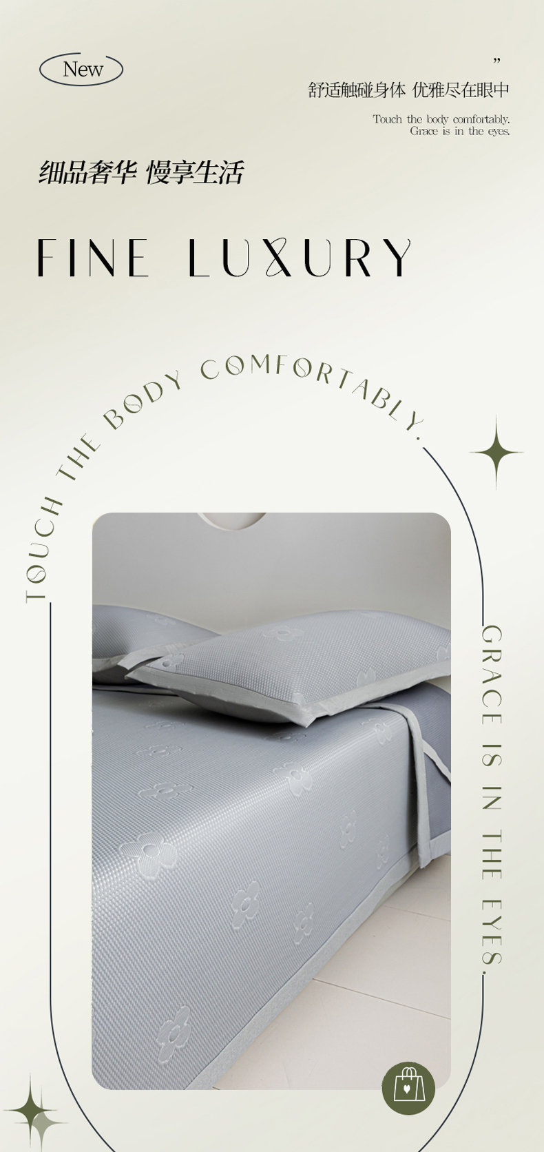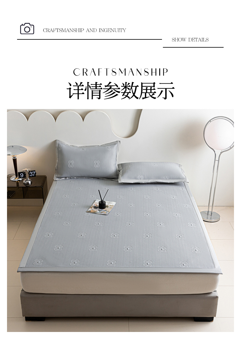 商品名称:阿亮家居 2025新款凉席凉豆豆软席床席款 四叶草-冰川灰