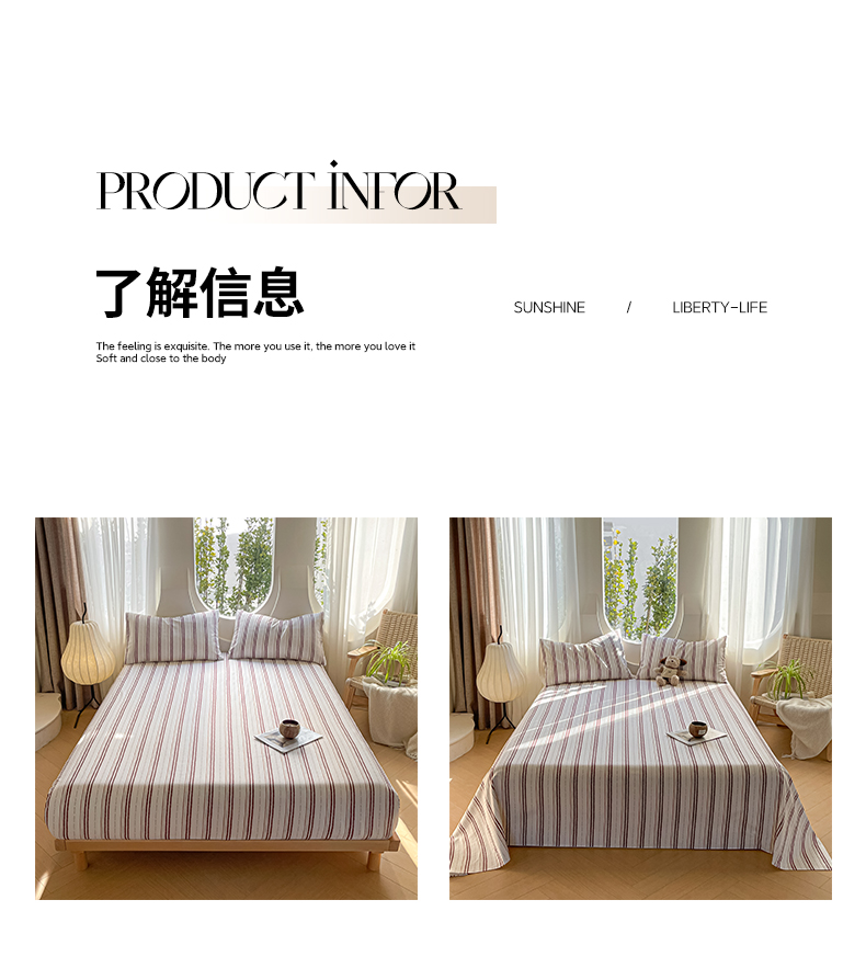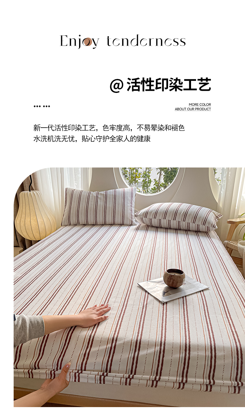 商品名称:雅居纺家纺 2025春夏新款全棉纯棉简约老粗布-单床笠 床笠单件凉席席 年华-咖