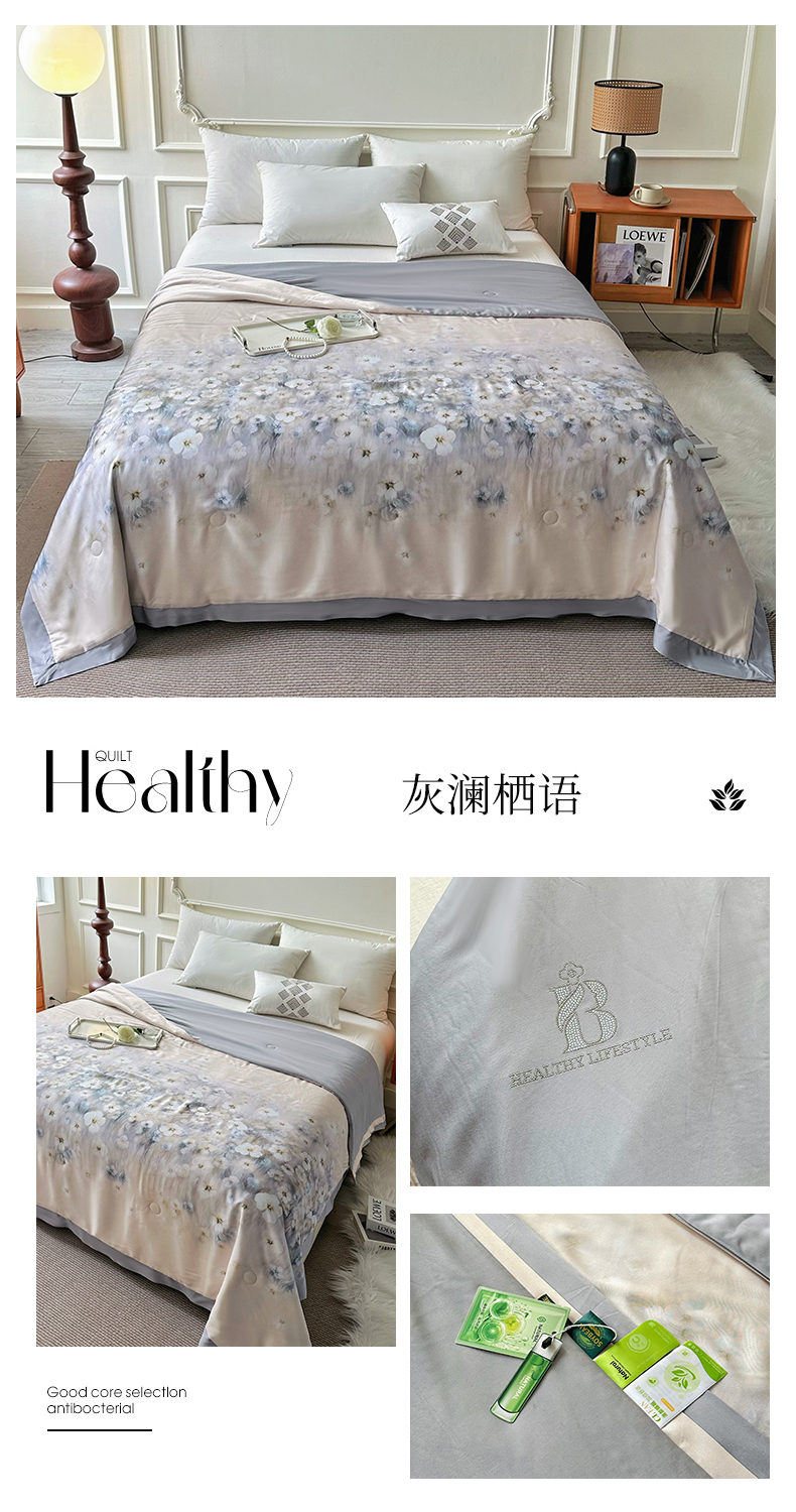• 91家纺网 家纺一手货源 找家纺 博尔菲  2025年新款数码印花AB版两用大豆夏凉被空调被夏被 数码印花 AB版-灰澜栖语