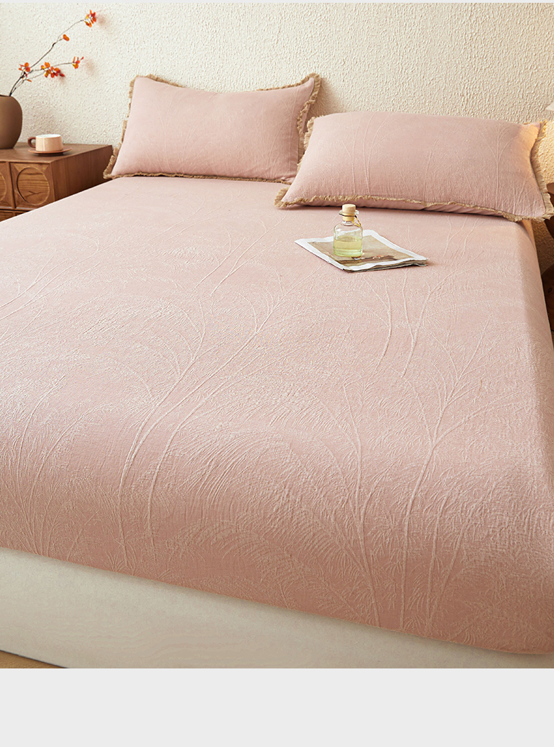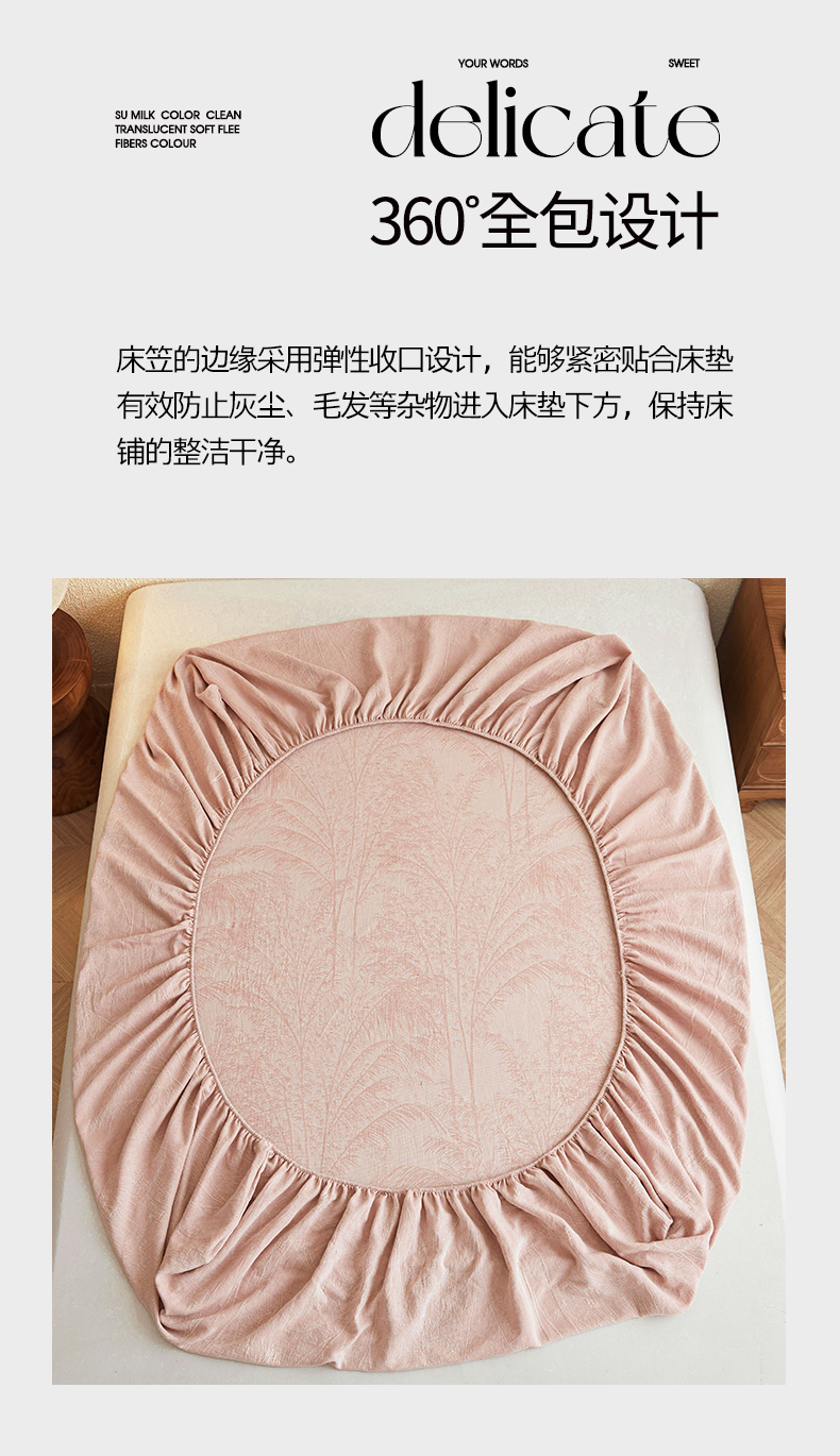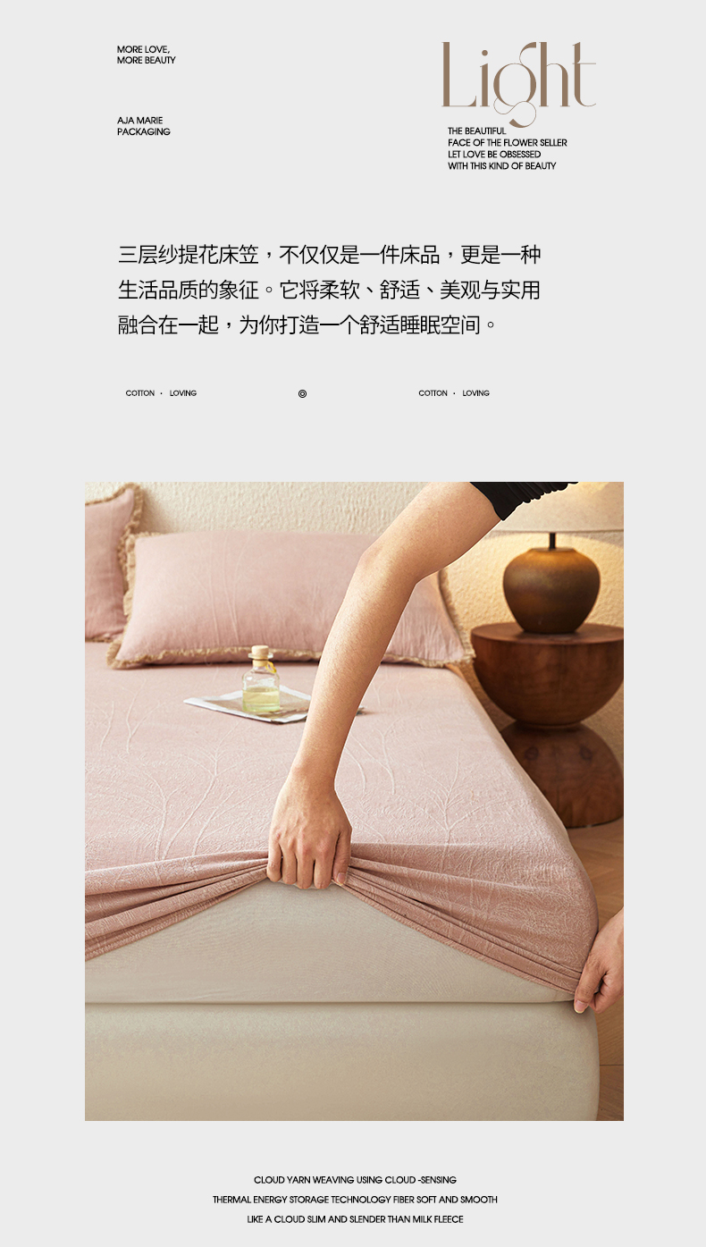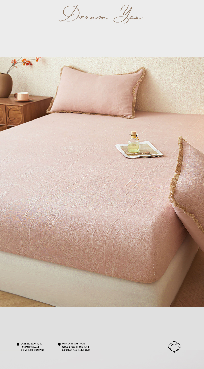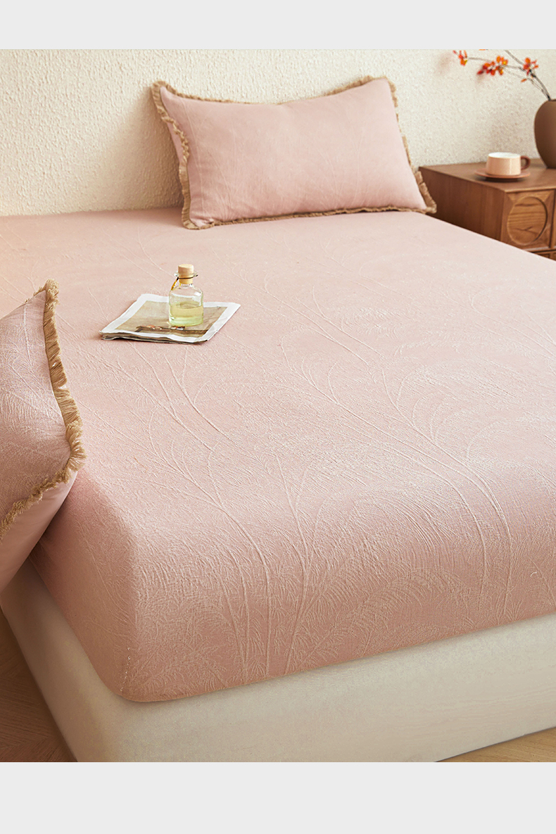 商品名称:极简 2025新款全棉三层纱提花床笠 菲奥娜柔粉