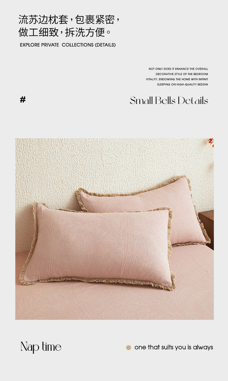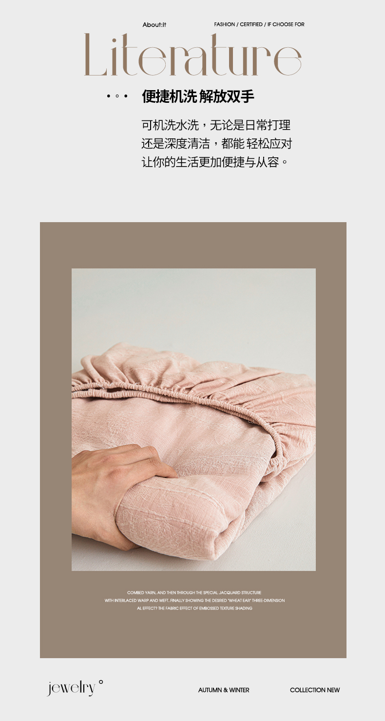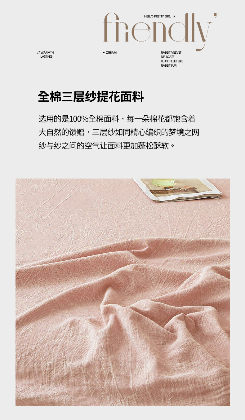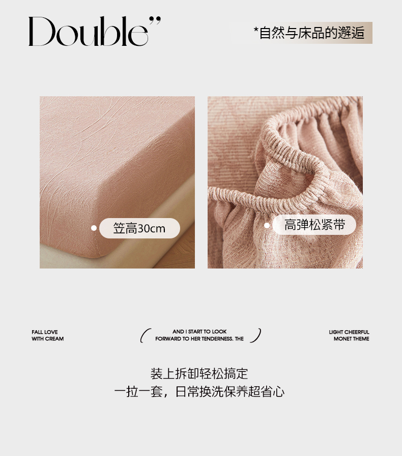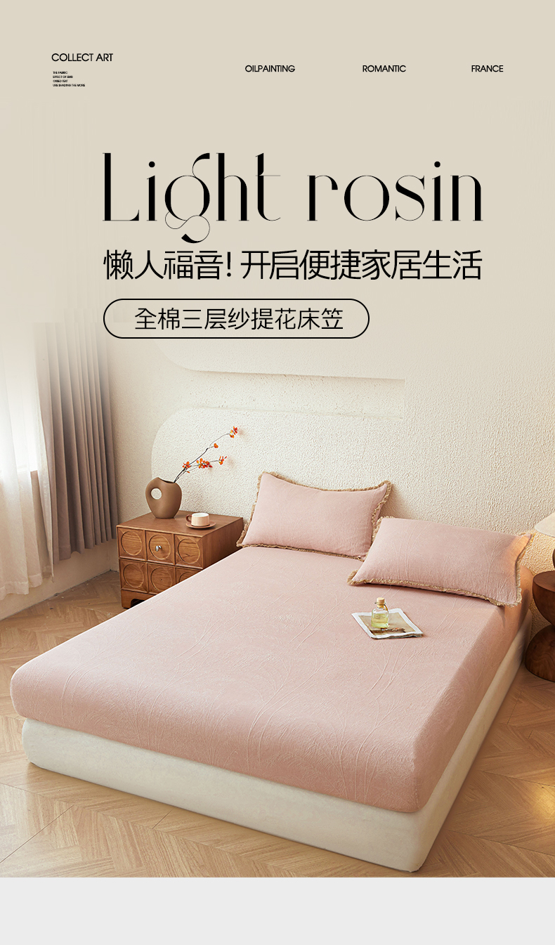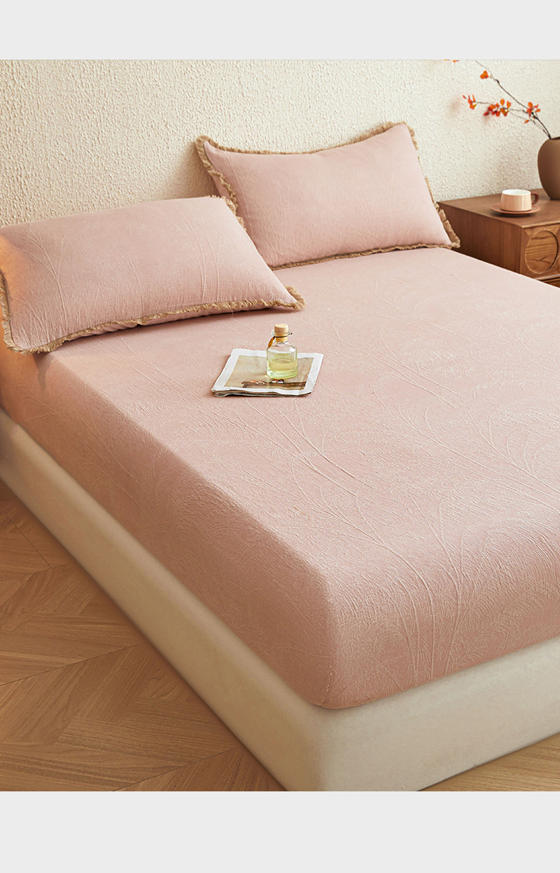 商品名称:极简 2025新款全棉三层纱提花床笠 菲奥娜柔粉