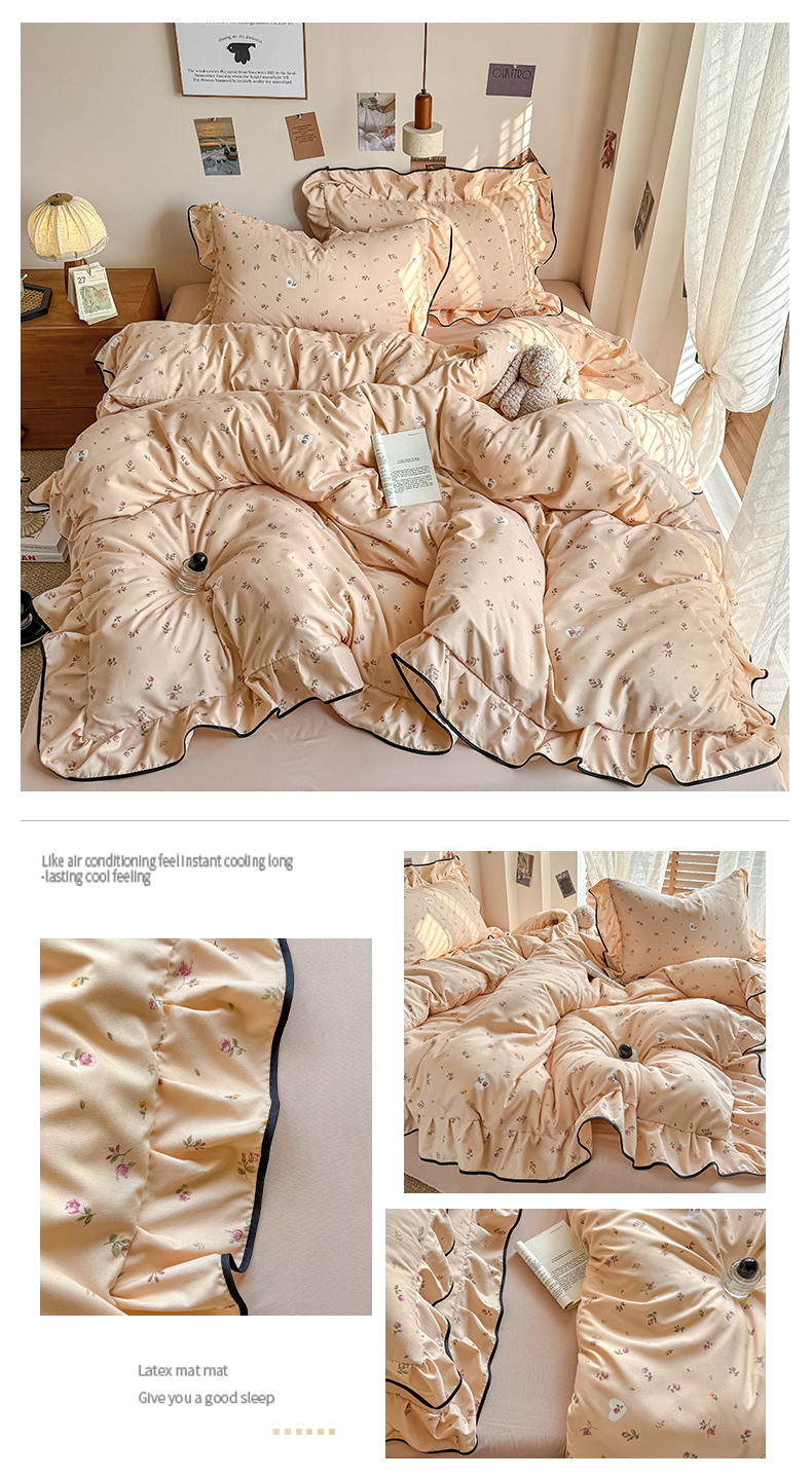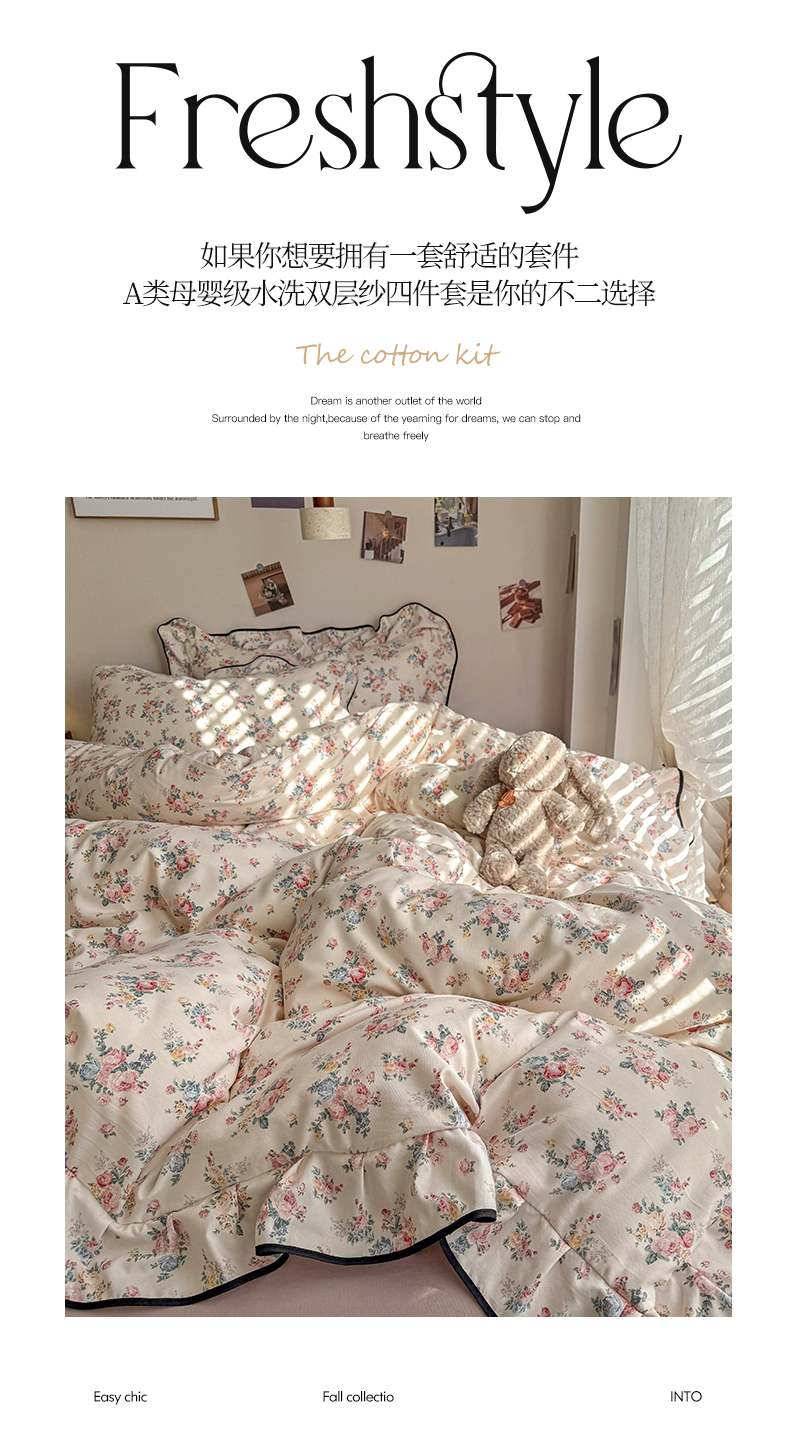 当前位置: 91家纺网 > 商品网购 > 床品套件 > 四件套 > 双层纱四件套 > 麦瑞家纺 2025新款A类韩版花边针织双层纱四件套 晨夕