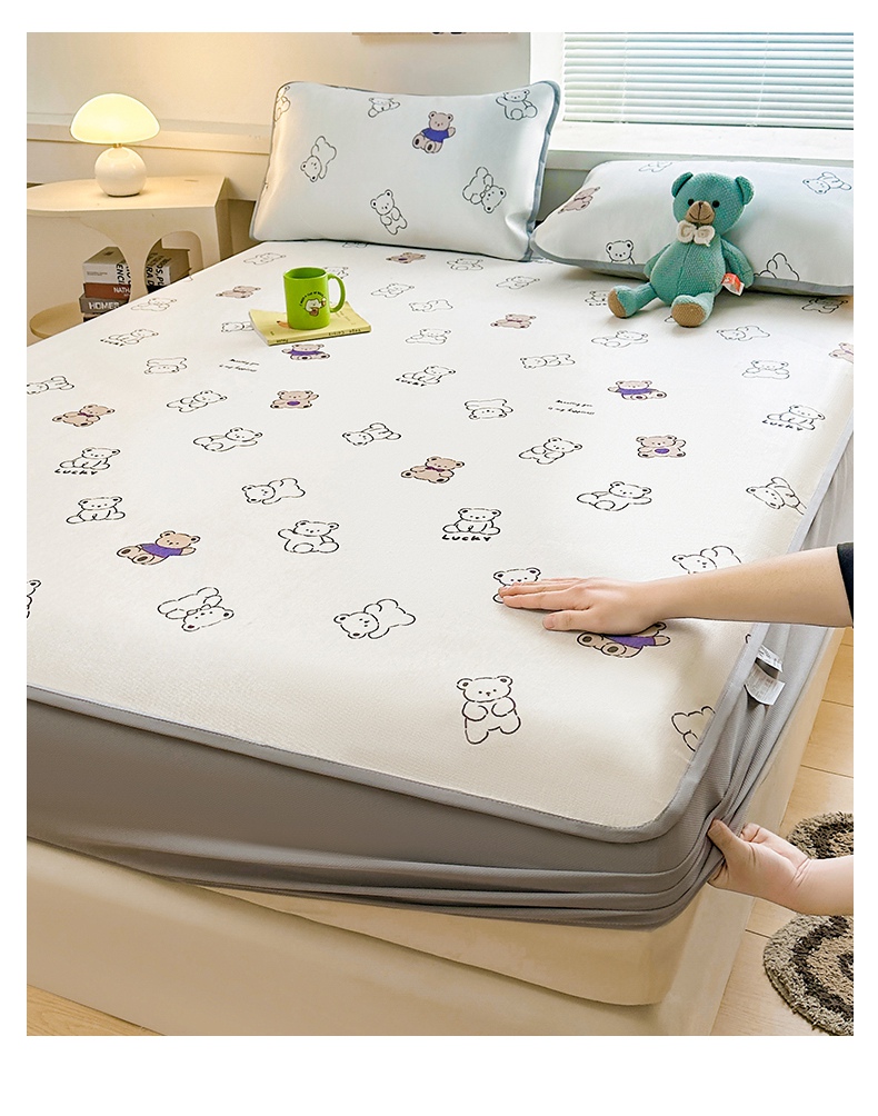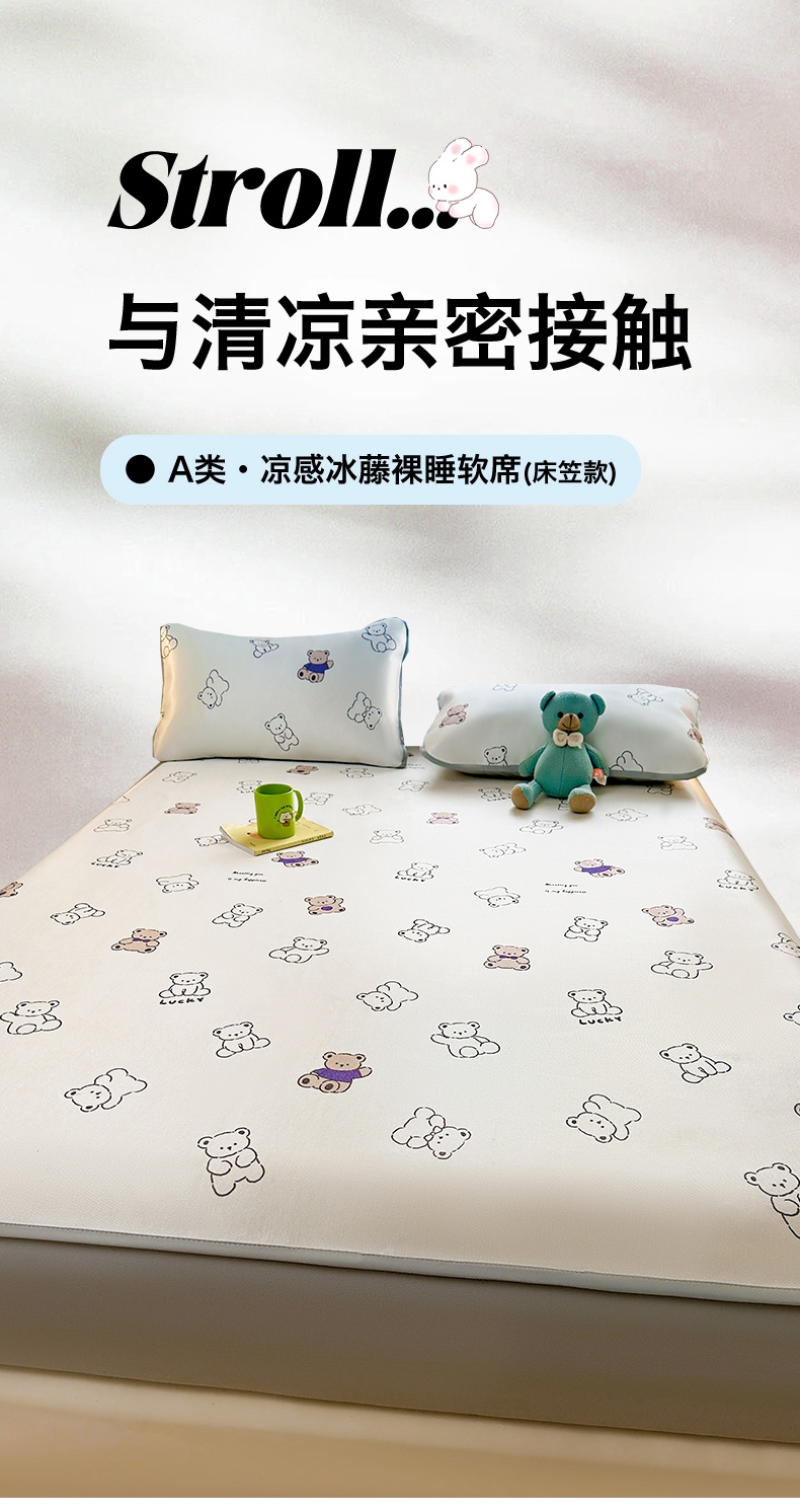 当前位置: 91家纺网 > 商品网购 > 床上用品 > 凉席 > 冰丝席 > 雯豆家纺 2025夏季新品冰藤印花床笠三件套加厚冰丝软藤席小清新印花床罩单件 冰藤席-床笠款-米洛熊