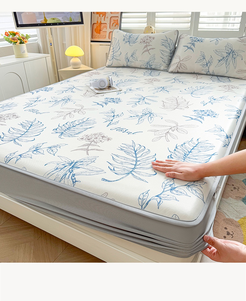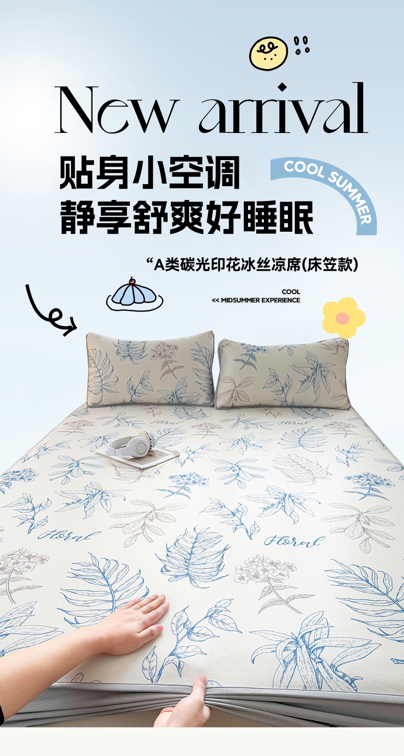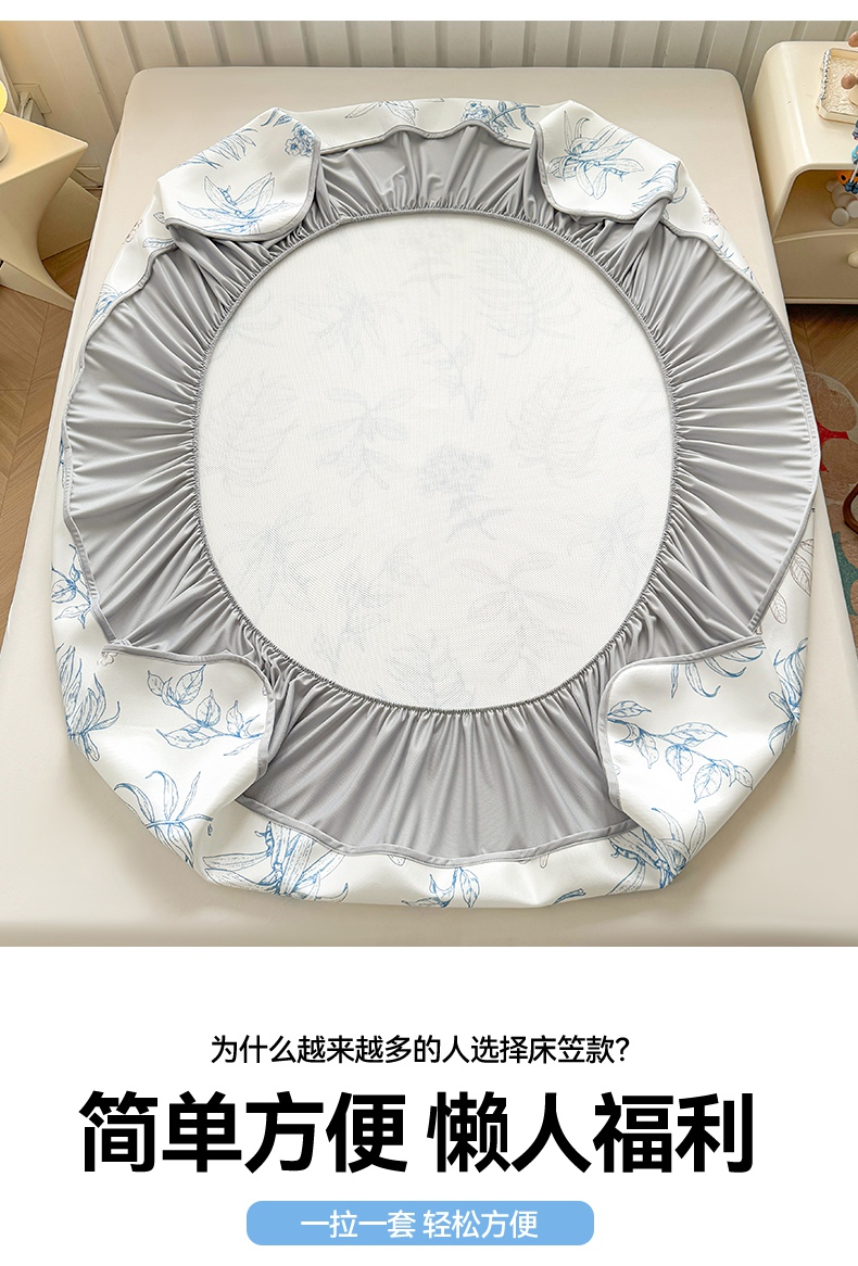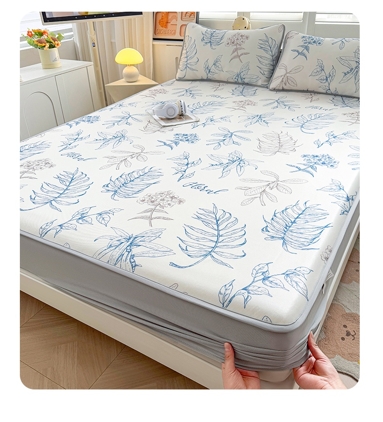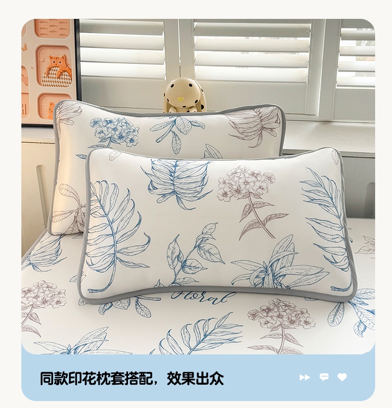 当前位置: 91家纺网 > 商品网购 > 床上用品 > 凉席 > 冰丝席 > 雯豆家纺 2025夏季新品碳光冰丝凉席床笠款三件套印花小清新绑带冰丝席床罩 碳光冰丝席-床笠款-迷失