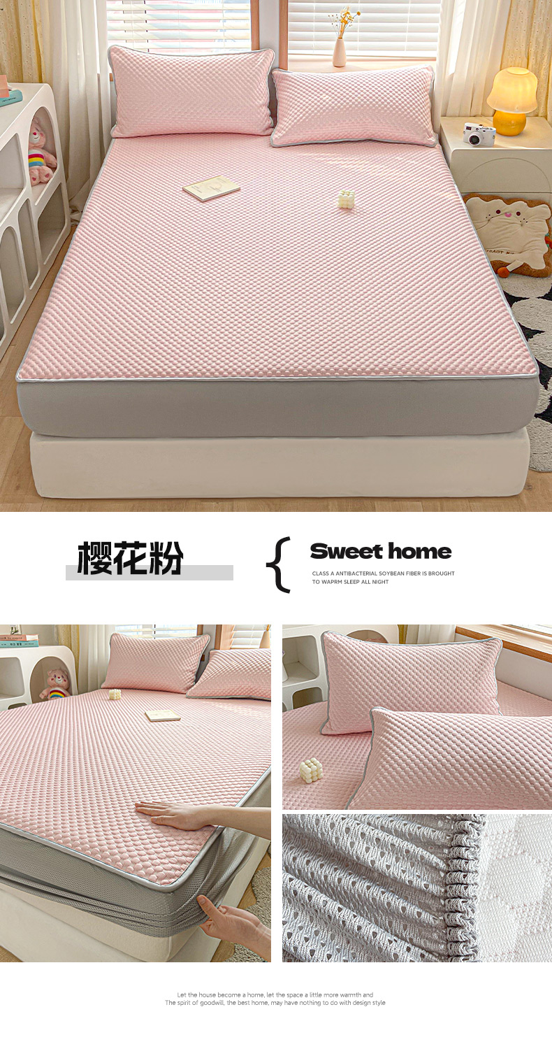 (总)卡伦 2025新款原棉抗菌大豆纤维防水夹棉床笠,白色,淡粉,果绿,卡其,水蓝,星灰