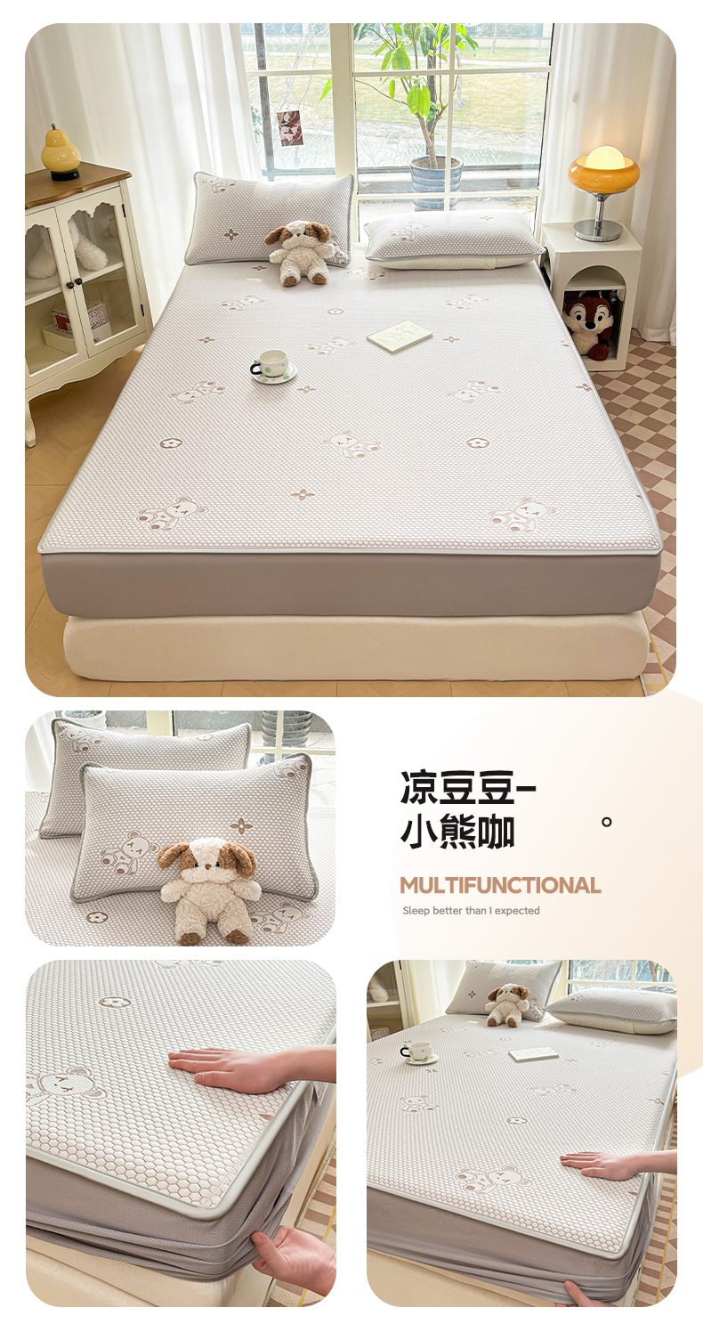 卡伦2025新款凉感丝凉豆豆凉席床笠提花系列 凉豆豆-小熊咖