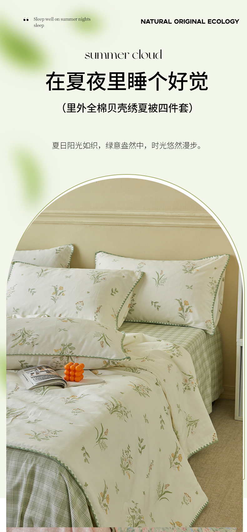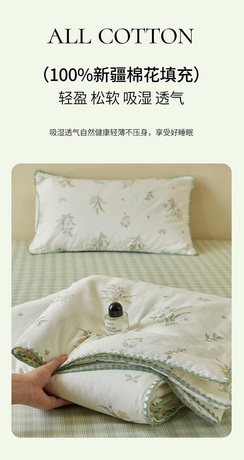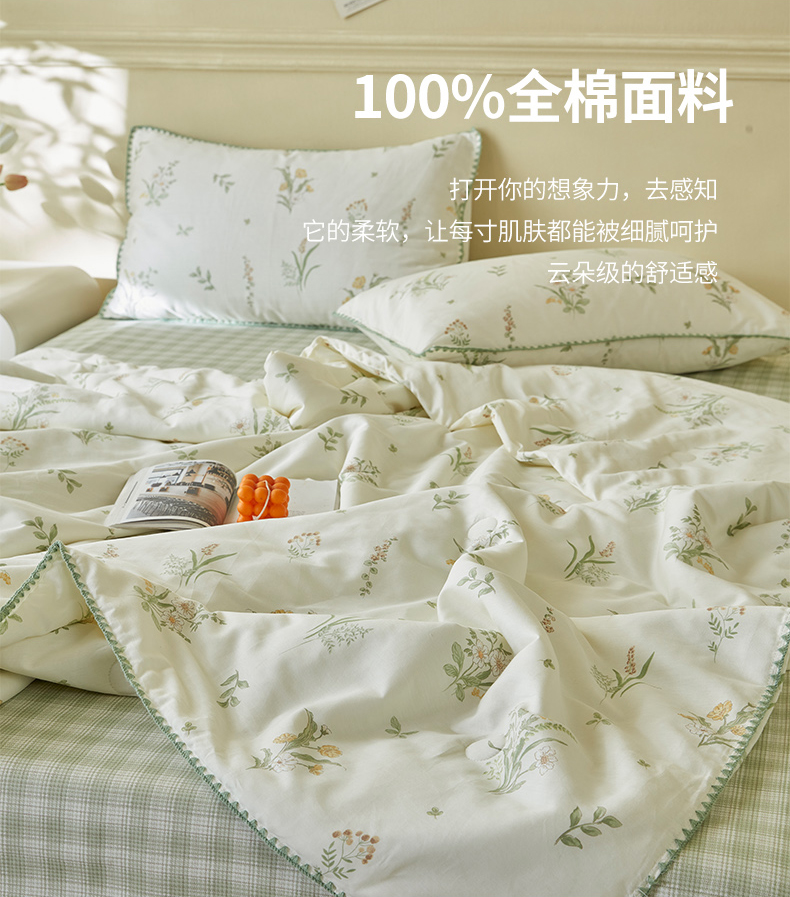 商品名称:暖阳 2025新款全棉贝壳边棉花夏被 花的温存